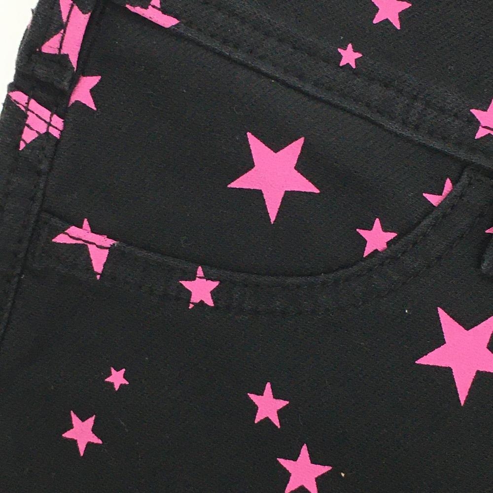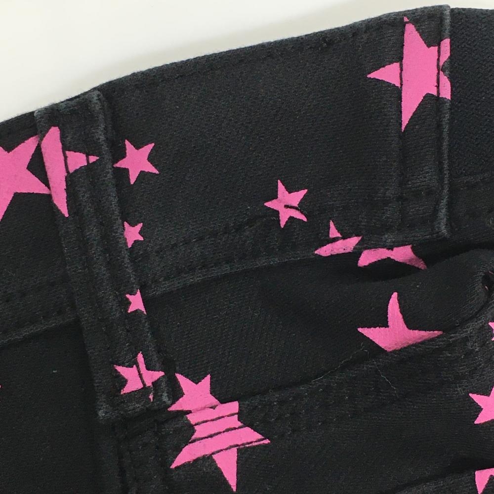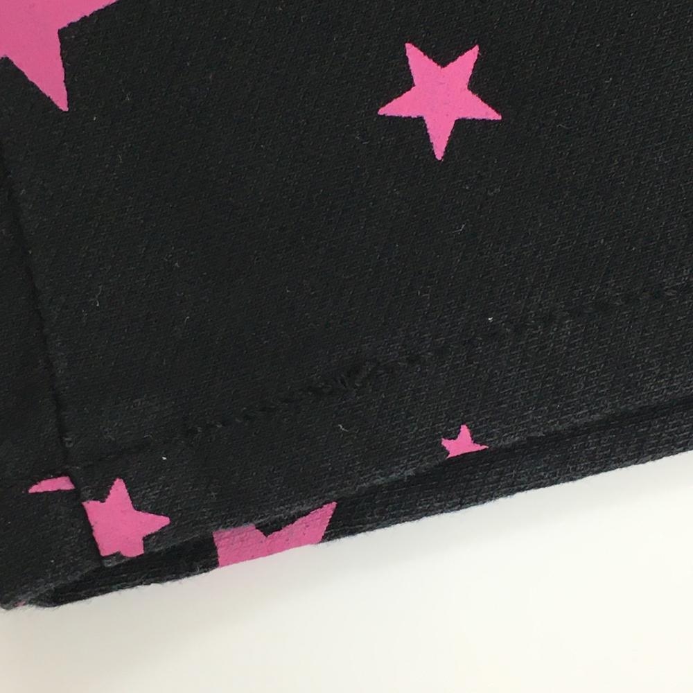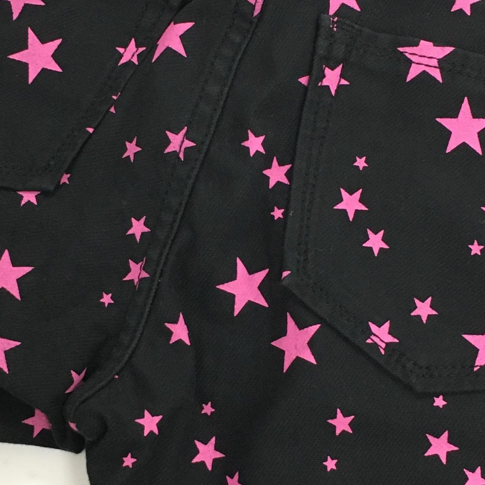 【美品】エドウィン 七分丈パンツ 黒×ピンク 星柄 ストレッチ フェイクポケット レディース M ゴルフウェア EDWIN GOLF