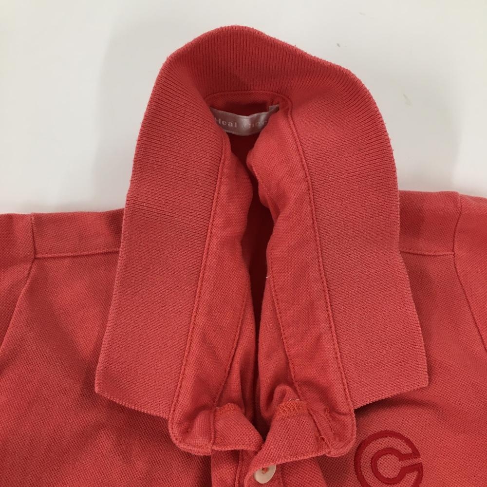 ヒールクリーク 半袖ポロシャツ ピンク系×レッド ロゴ刺しゅう レディース 42(L) ゴルフウェア Heal Creek
