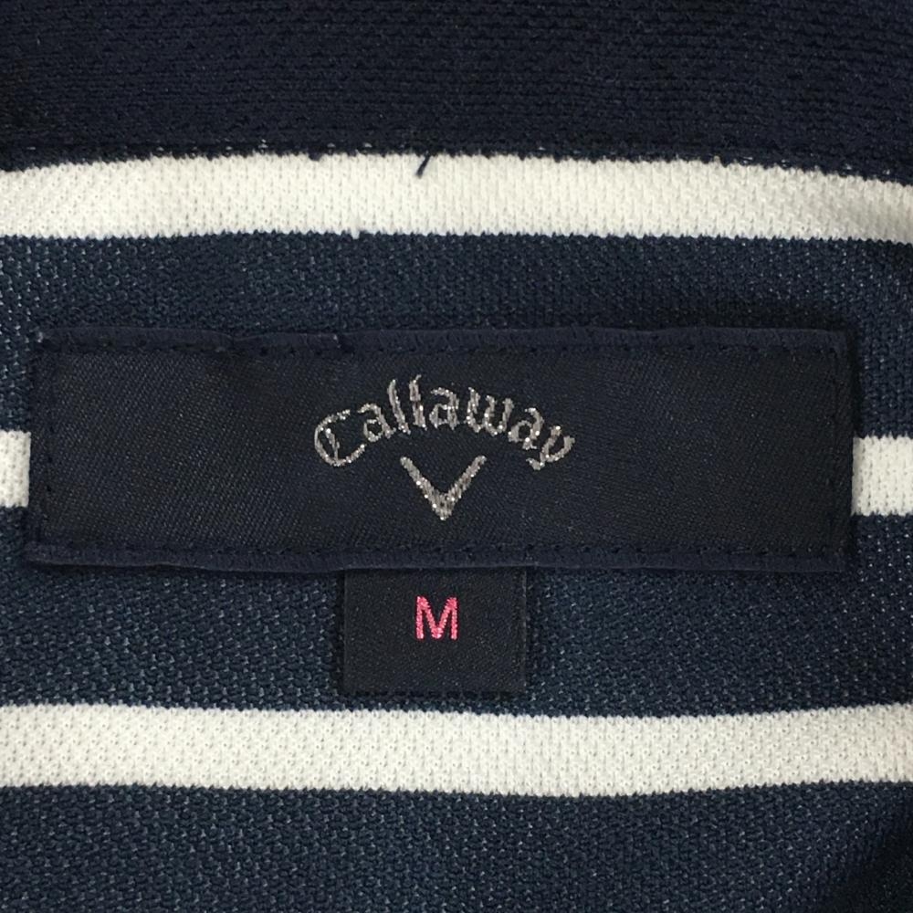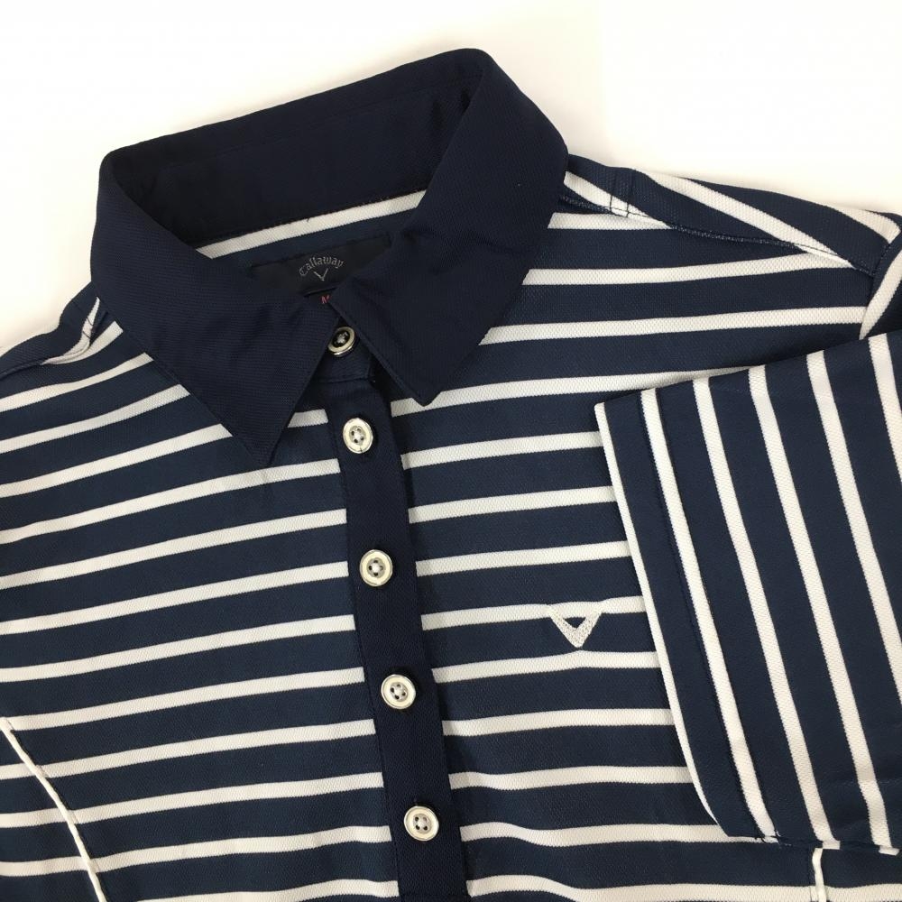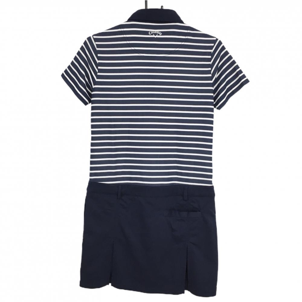 【美品】キャロウェイ 半袖ポロワンピース ネイビー×白 身頃ボーダー ロゴ刺しゅう レディース M ゴルフウェア Callaway