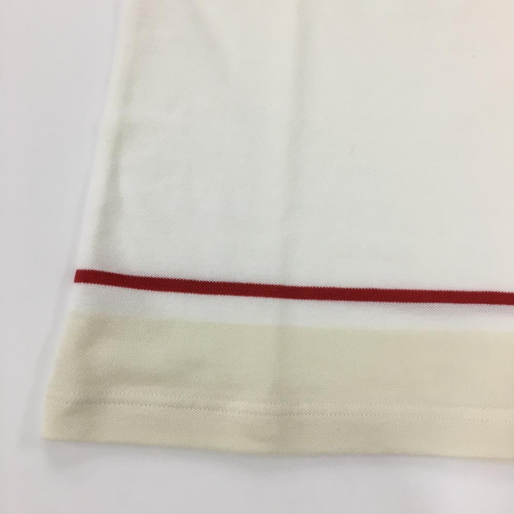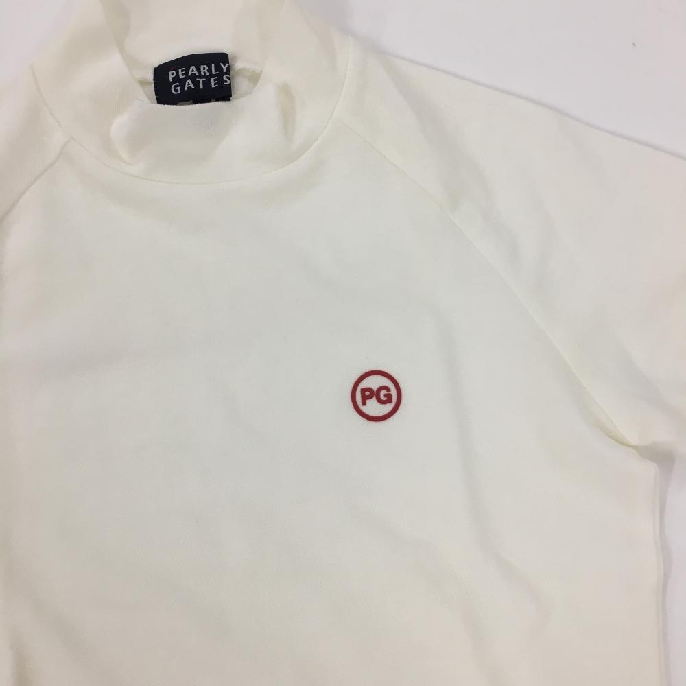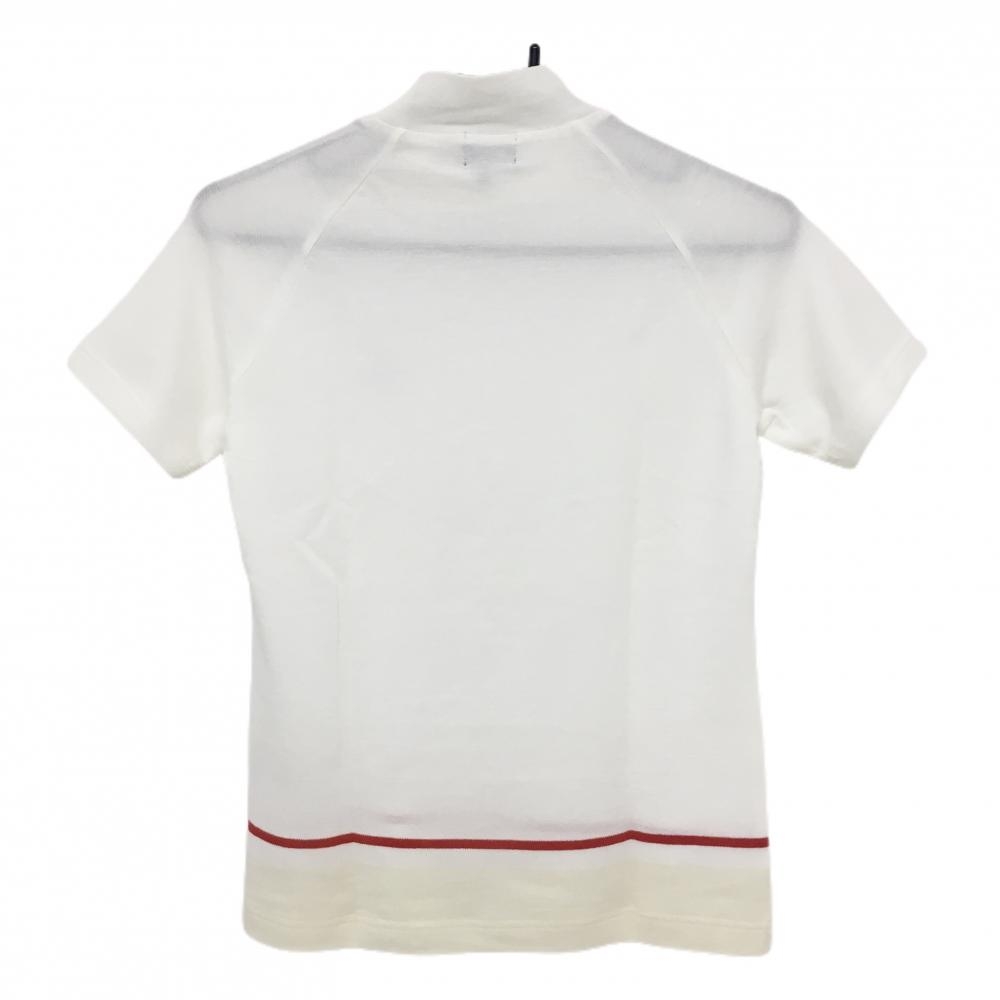 【美品】パーリーゲイツ 半袖ハイネックシャツ 白×レッド 裾ライン レディース 0(S) ゴルフウェア PEARLY GATES