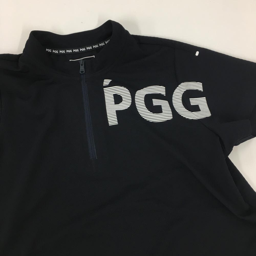【美品】PGGパーリーゲイツ 半袖ポロシャツ 黒×白 スタンドカラー ハーフジップ レディース 0(S) ゴルフウェア 2023年モデル PEARLY GATES