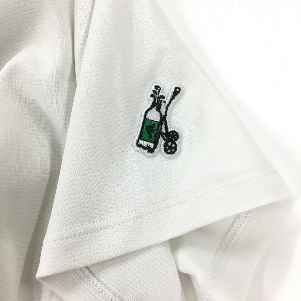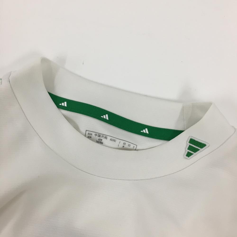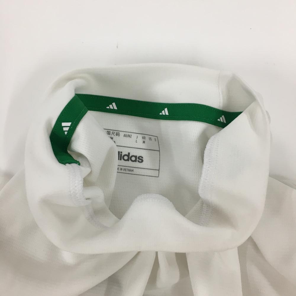 アディダス 半袖ハイネックシャツ 白×グリーン ゴルフ柄 ネックロゴ 袖ワッペン レディース L ゴルフウェア adidas