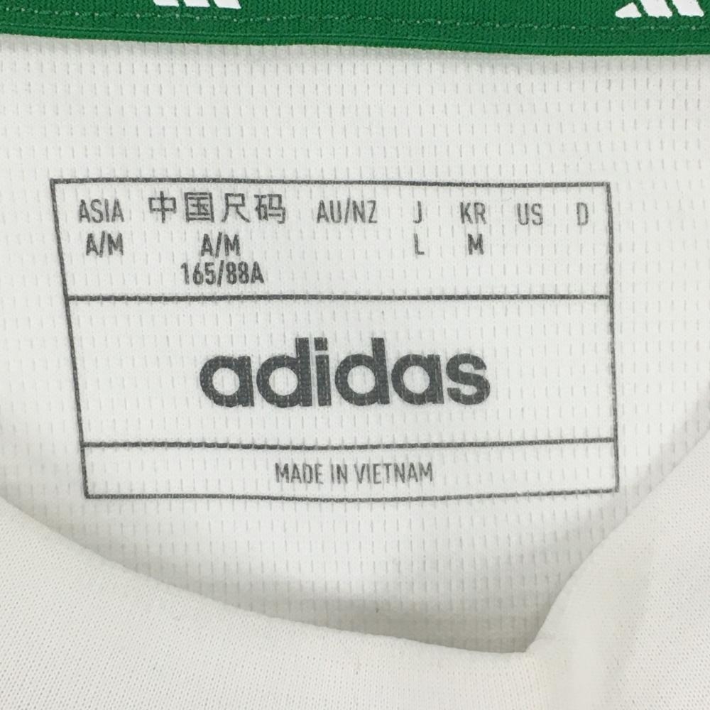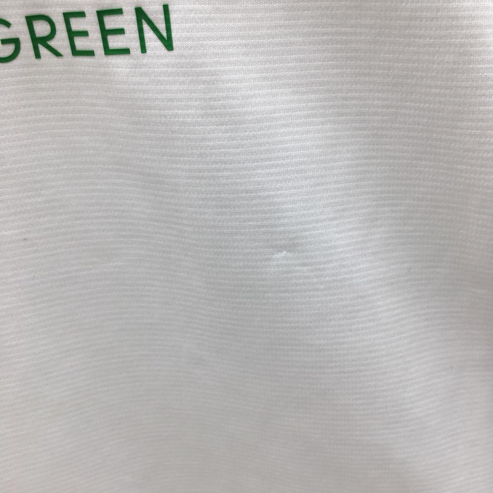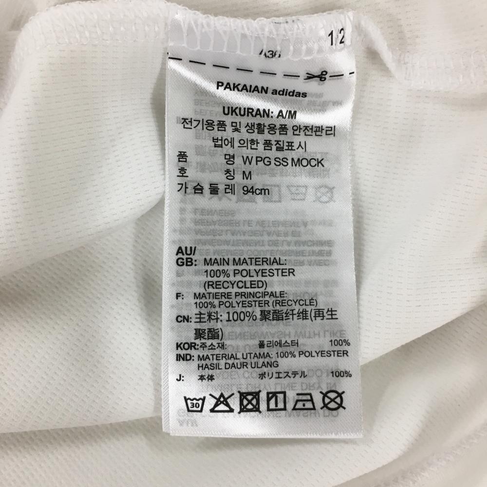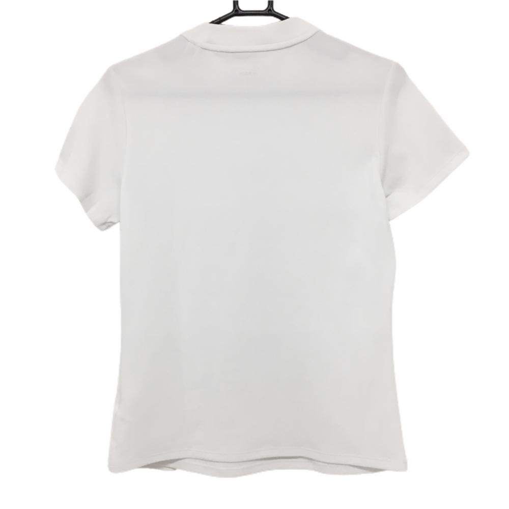 アディダス 半袖ハイネックシャツ 白×グリーン ゴルフ柄 ネックロゴ 袖ワッペン レディース L ゴルフウェア adidas