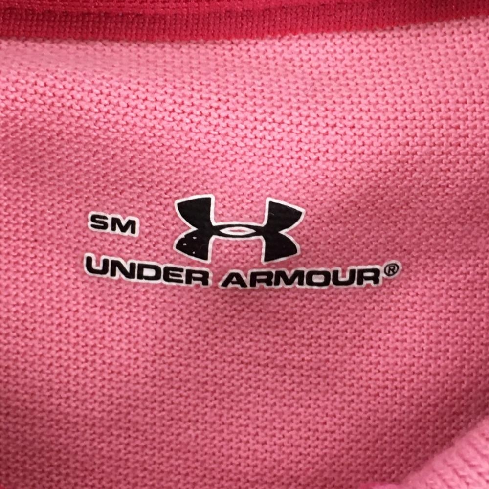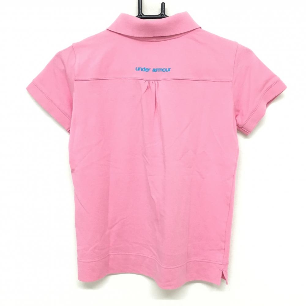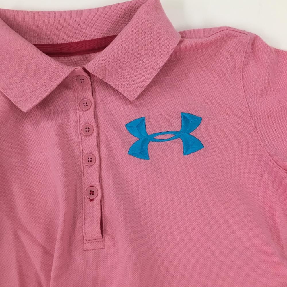 【超美品】アンダーアーマー 半袖ポロシャツ ピンク×ライトブルー 胸ロゴ刺しゅう レディース SM(S) ゴルフウェア UNDER ARMOUR