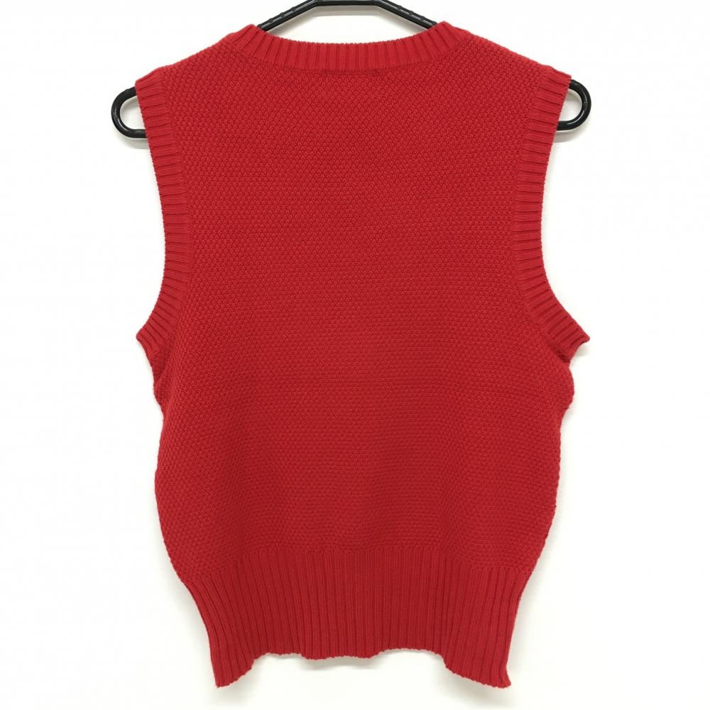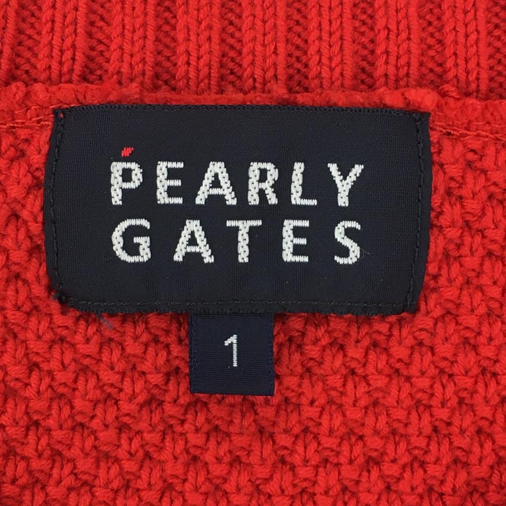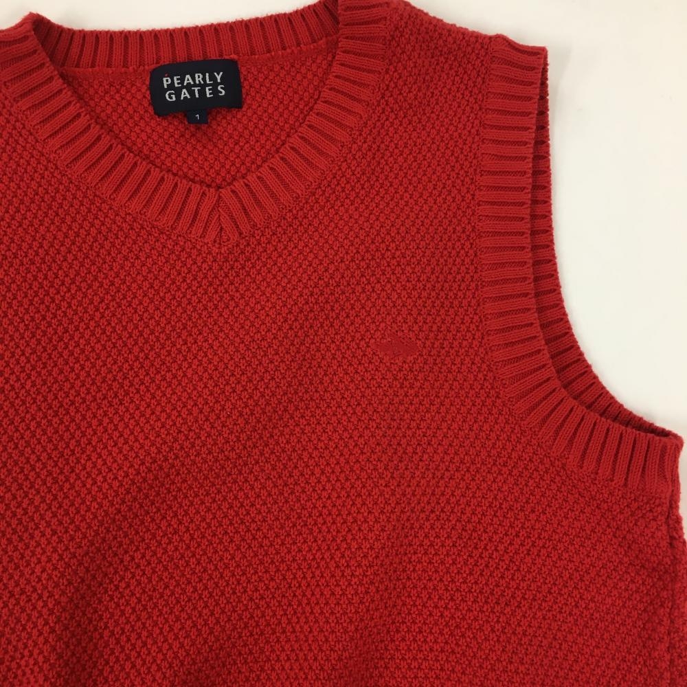 【超美品】パーリーゲイツ ニットベスト レッド 胸元ロゴ Vネック コットン混 レディース 1(M) ゴルフウェア PEARLY GATES