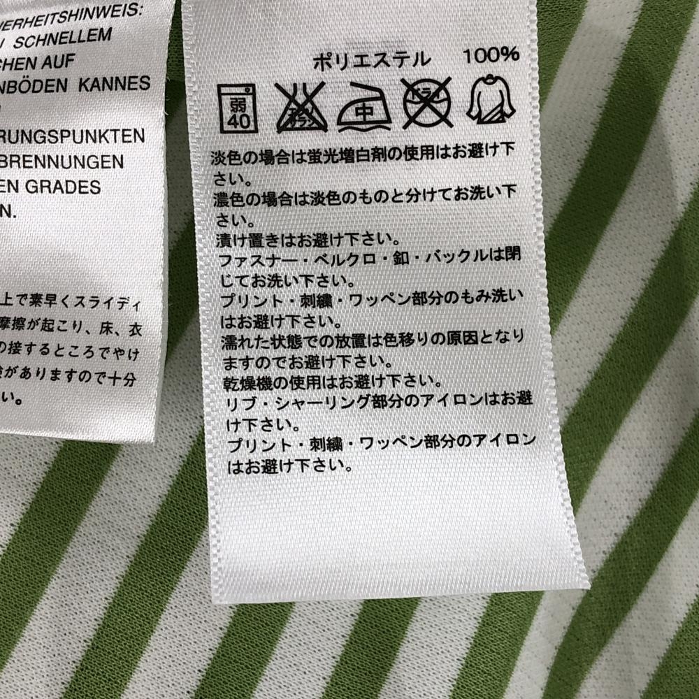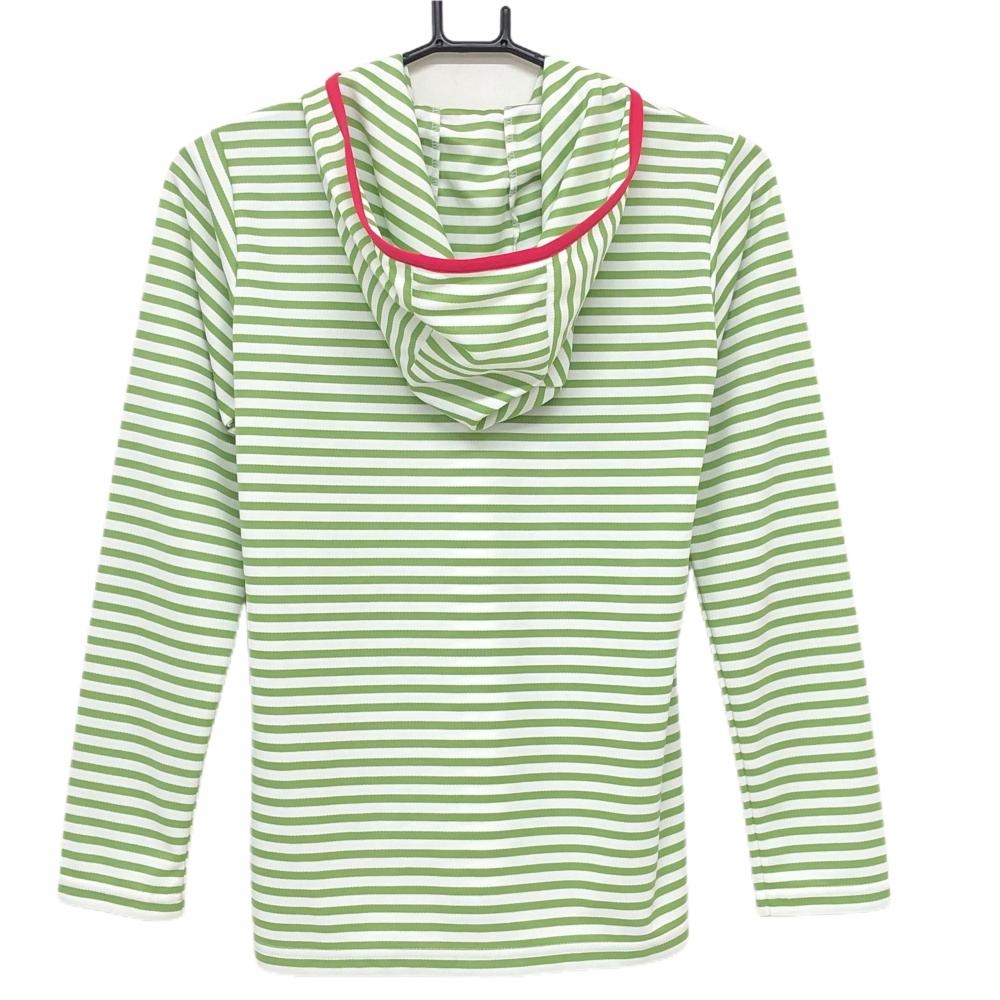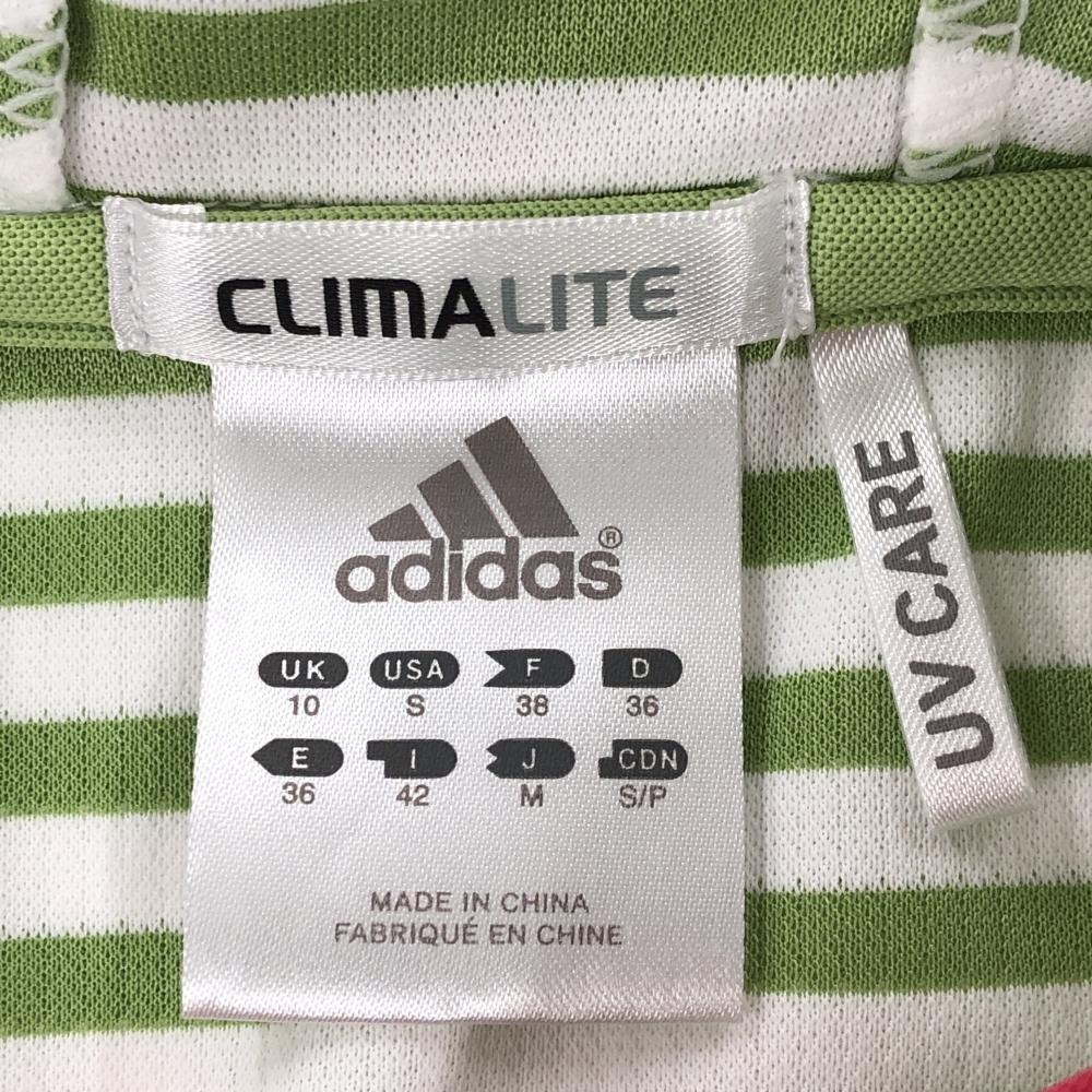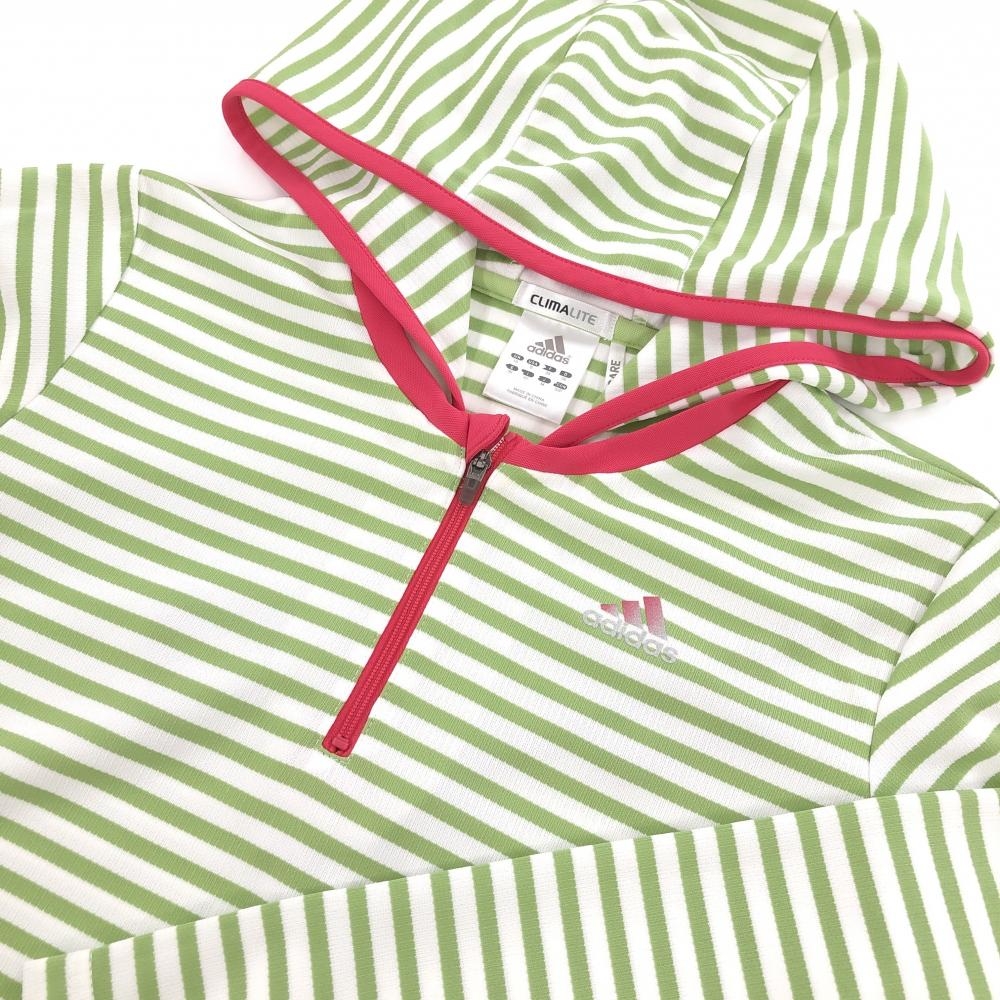 【超美品】アディダス フード付き長袖シャツ ライトグリーン×白 ボーダー ハーフジップ クリマライト レディース M ゴルフウェア adidas