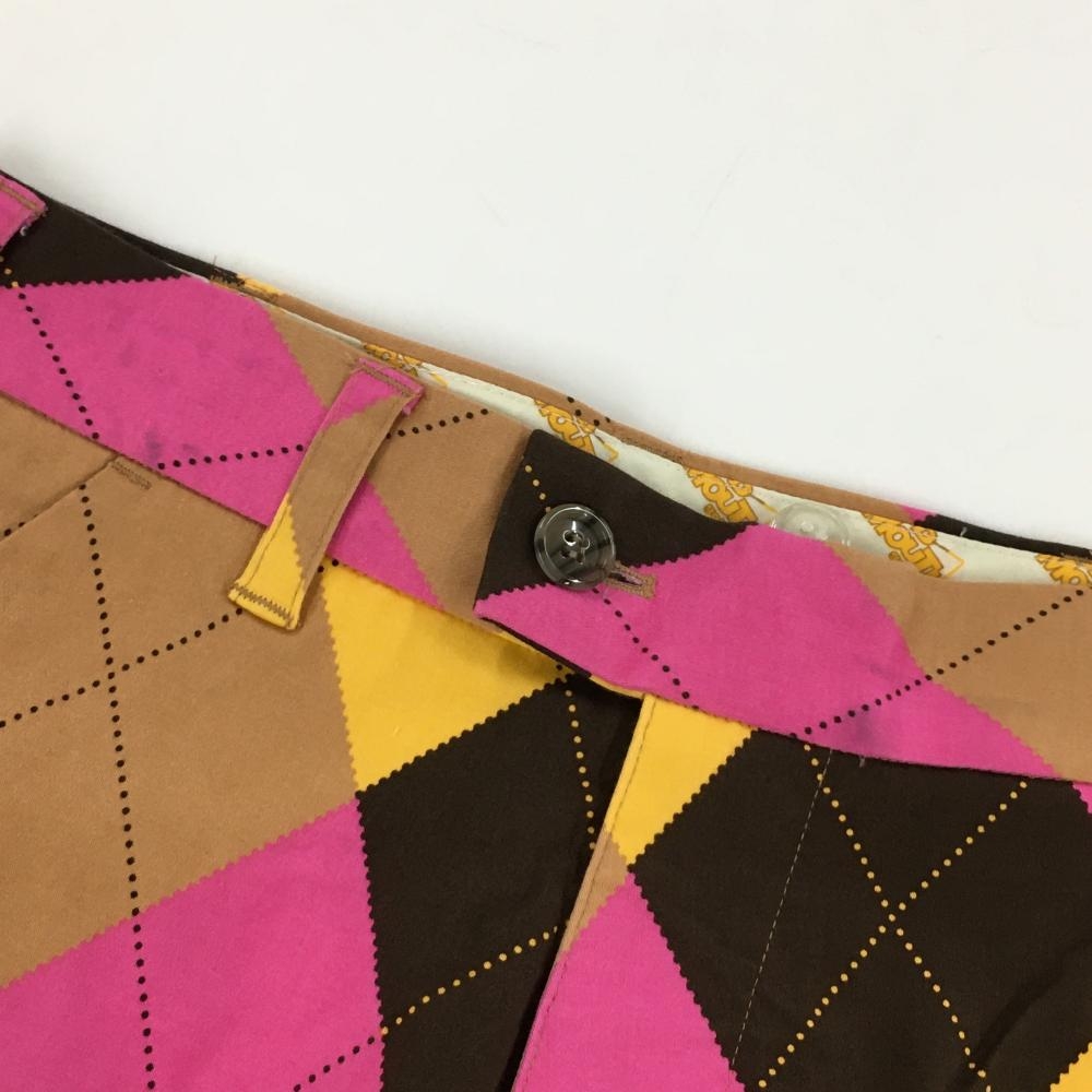 ラウドマウス パンツ ブラウン系×ピンク パーガイル ストレッチ レディース 28×30L ゴルフウェア LOUDMOUTH