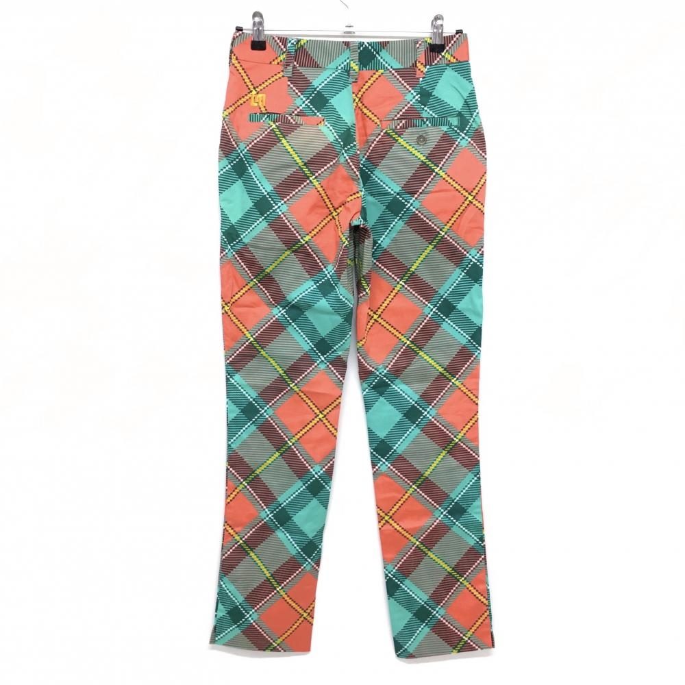 ラウドマウス パンツ グリーン×オレンジ チェック タータン ストレッチ レディース 28×30L ゴルフウェア LOUDMOUTH