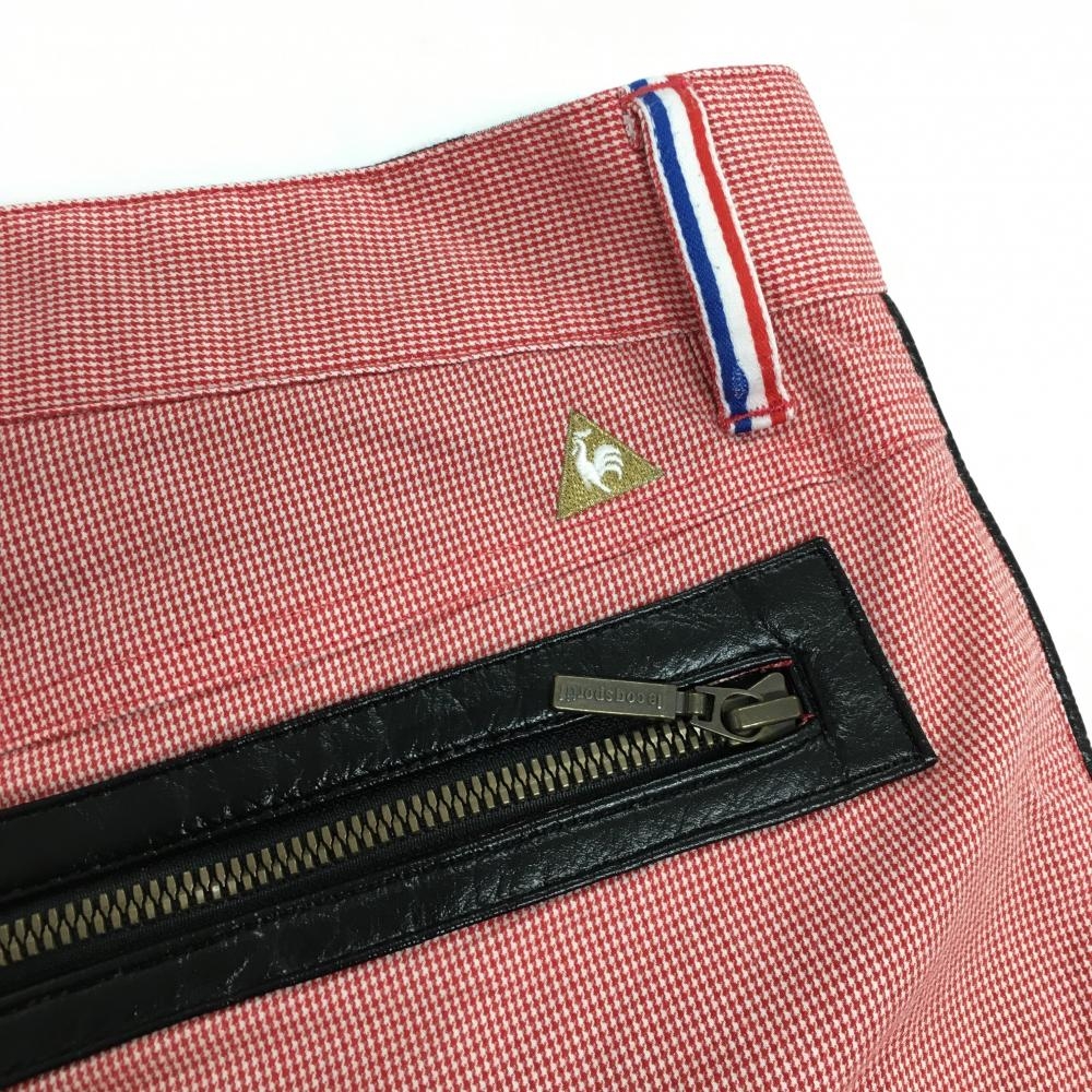 ルコックゴルフ パンツ レッド×白 千鳥調 サイドライン 一部合成皮革 ストレッチ メンズ 88 ゴルフウェア le coq sportif