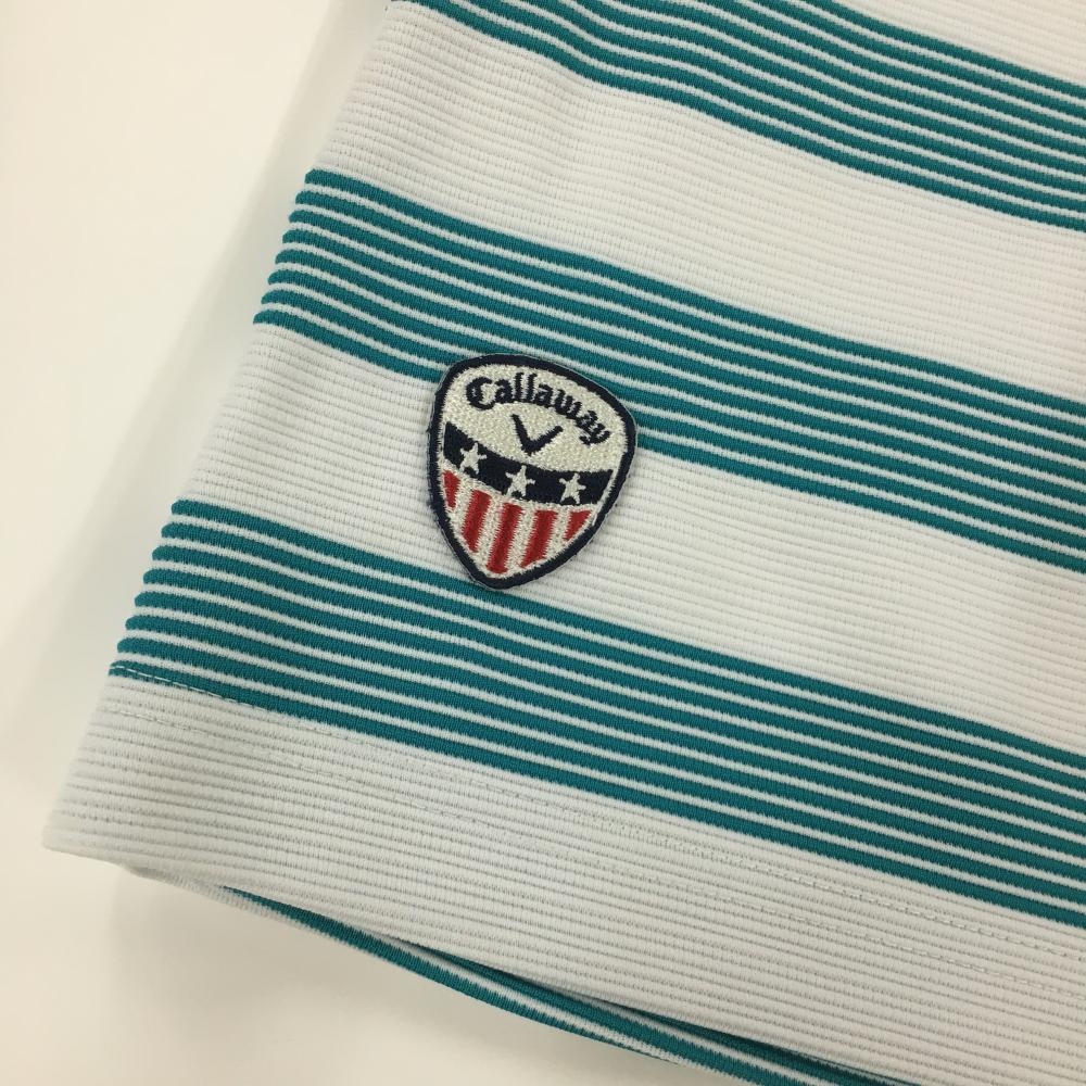 【美品】キャロウェイ スカート 白×ブルーグリーン ボーダー ストレッチ 裏地付き レディース M ゴルフウェア サンプル品 Callaway