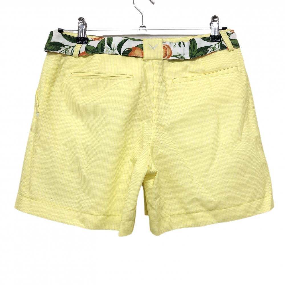 【超美品】キャロウェイ ショートパンツ イエロー×白×グリーン メッシュ調 一部オレンジ柄 レディース M ゴルフウェア Callaway