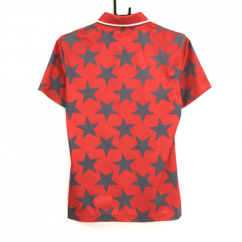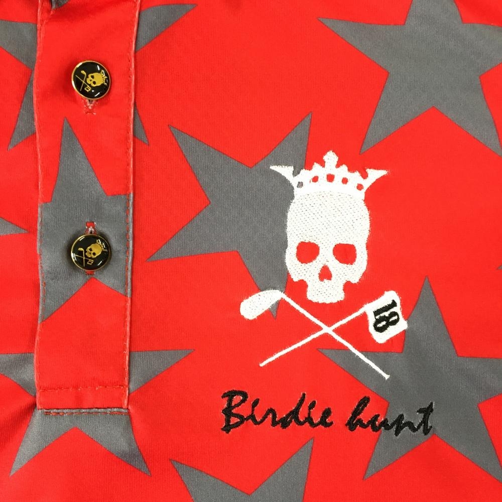 【美品】バーディハント 半袖ポロシャツ レッド×グレー 星柄 スカル ボタンダウンは メンズ XS ゴルフウェア Birdie hunt