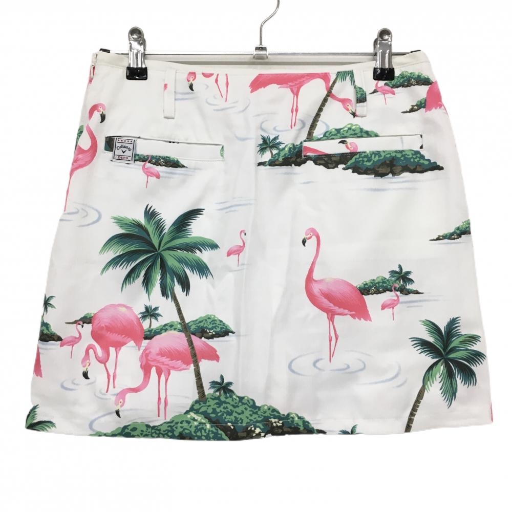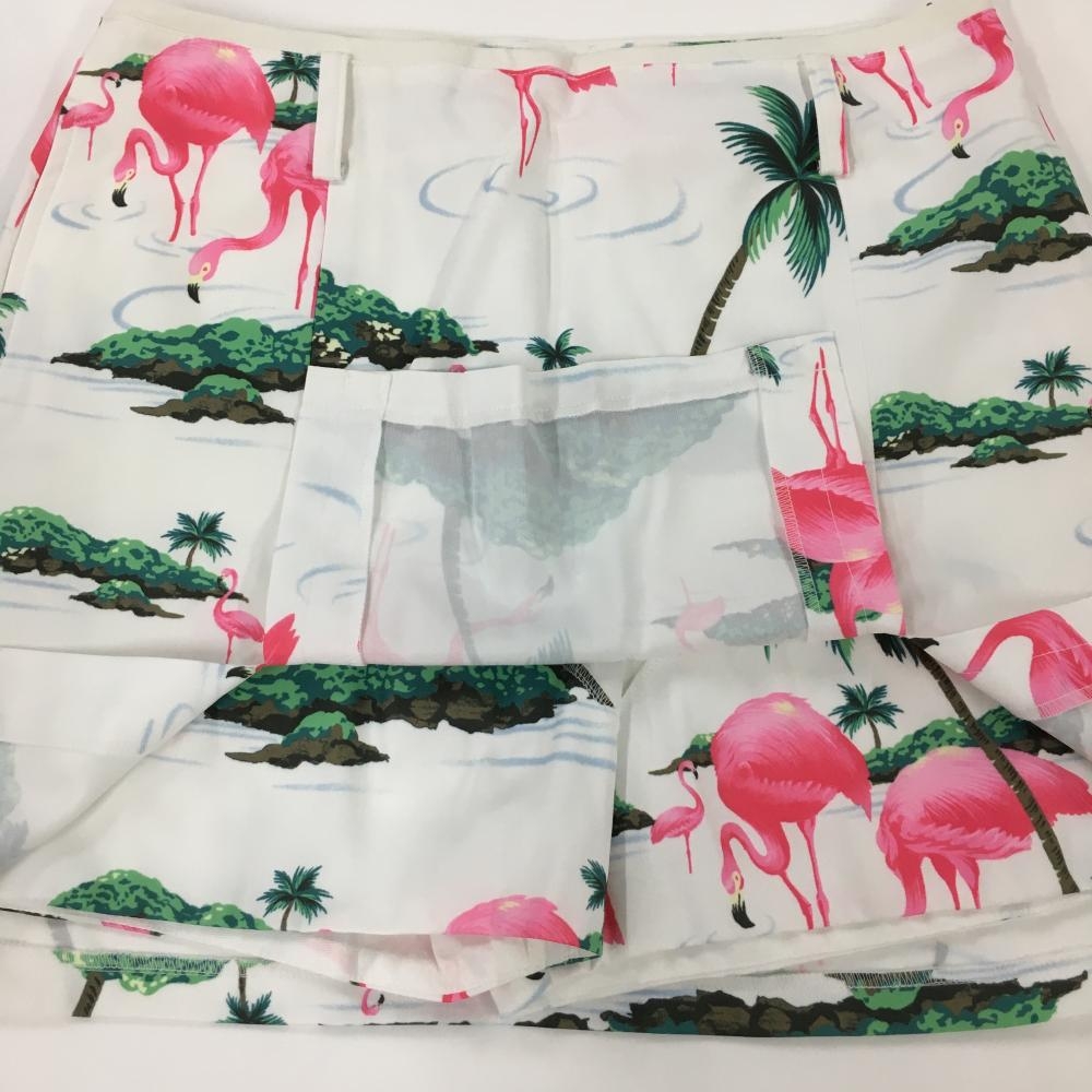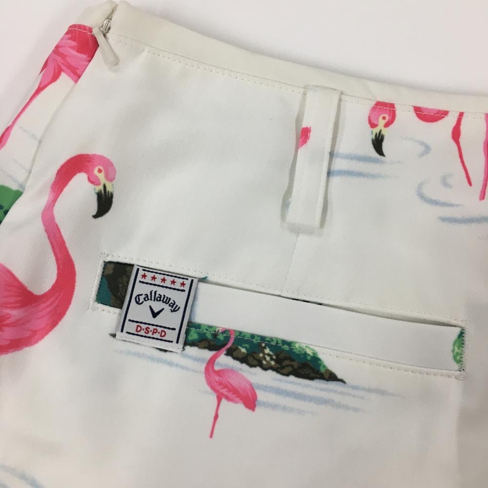 【超美品】キャロウェイ スカート 白×ピンク フラミンゴ柄 内側インナーパンツ レディース M ゴルフウェア サンプル品 Callaway