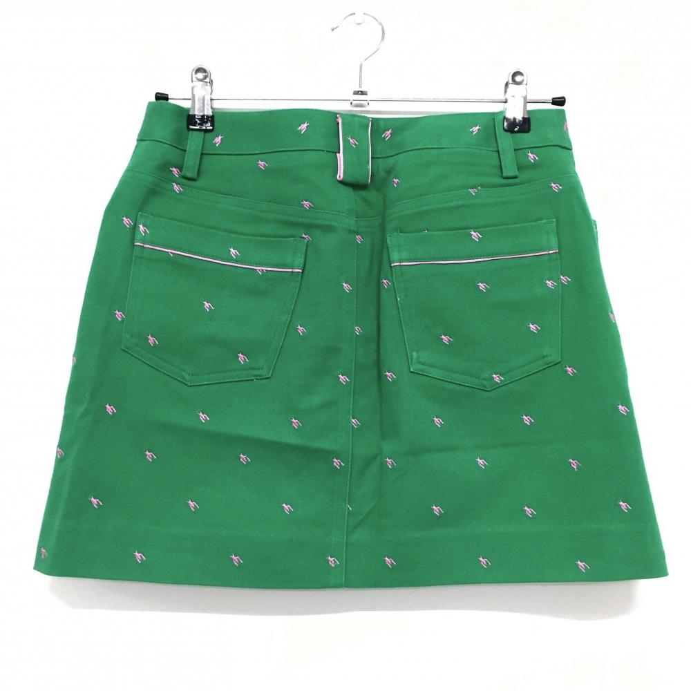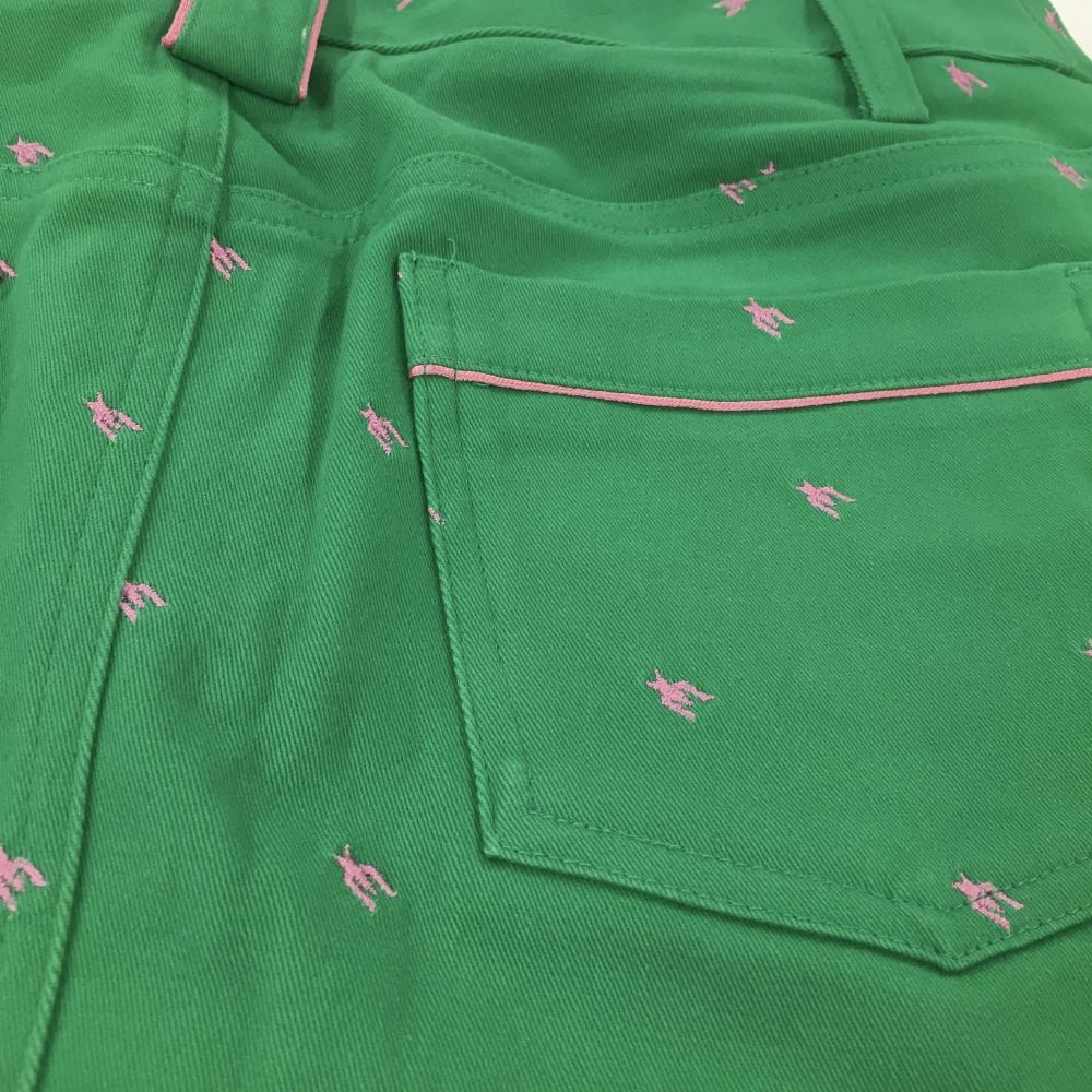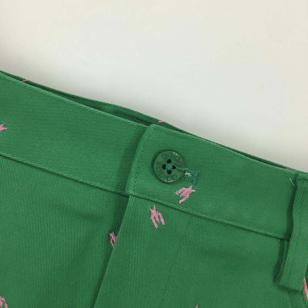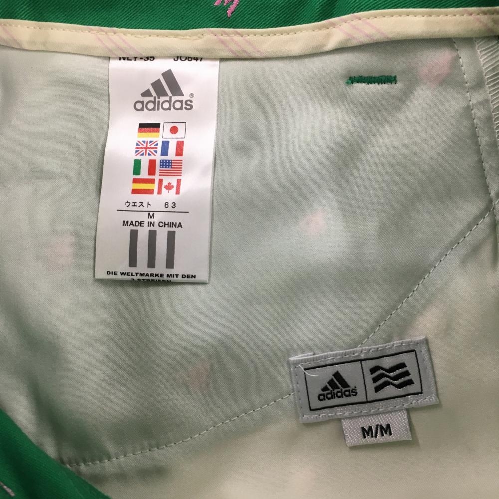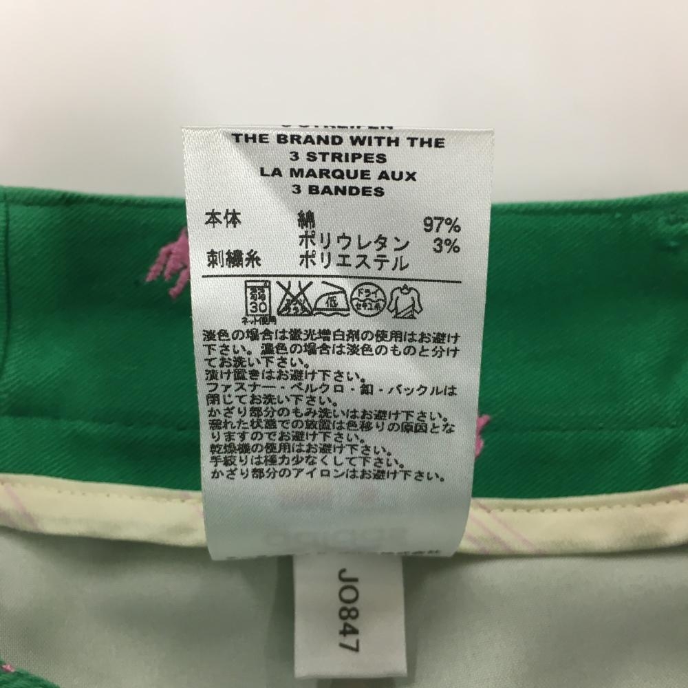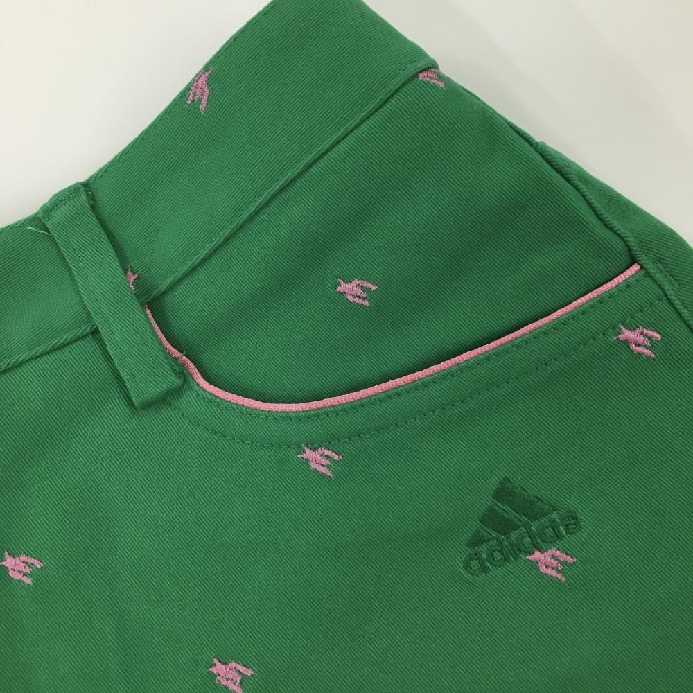 アディダス スカート グリーン×ピンク 刺しゅう総柄 ポケットパイピングライン ストレッチ レディース M ゴルフウェア adidas