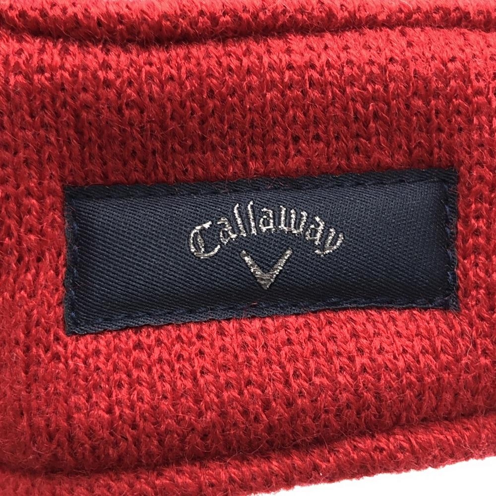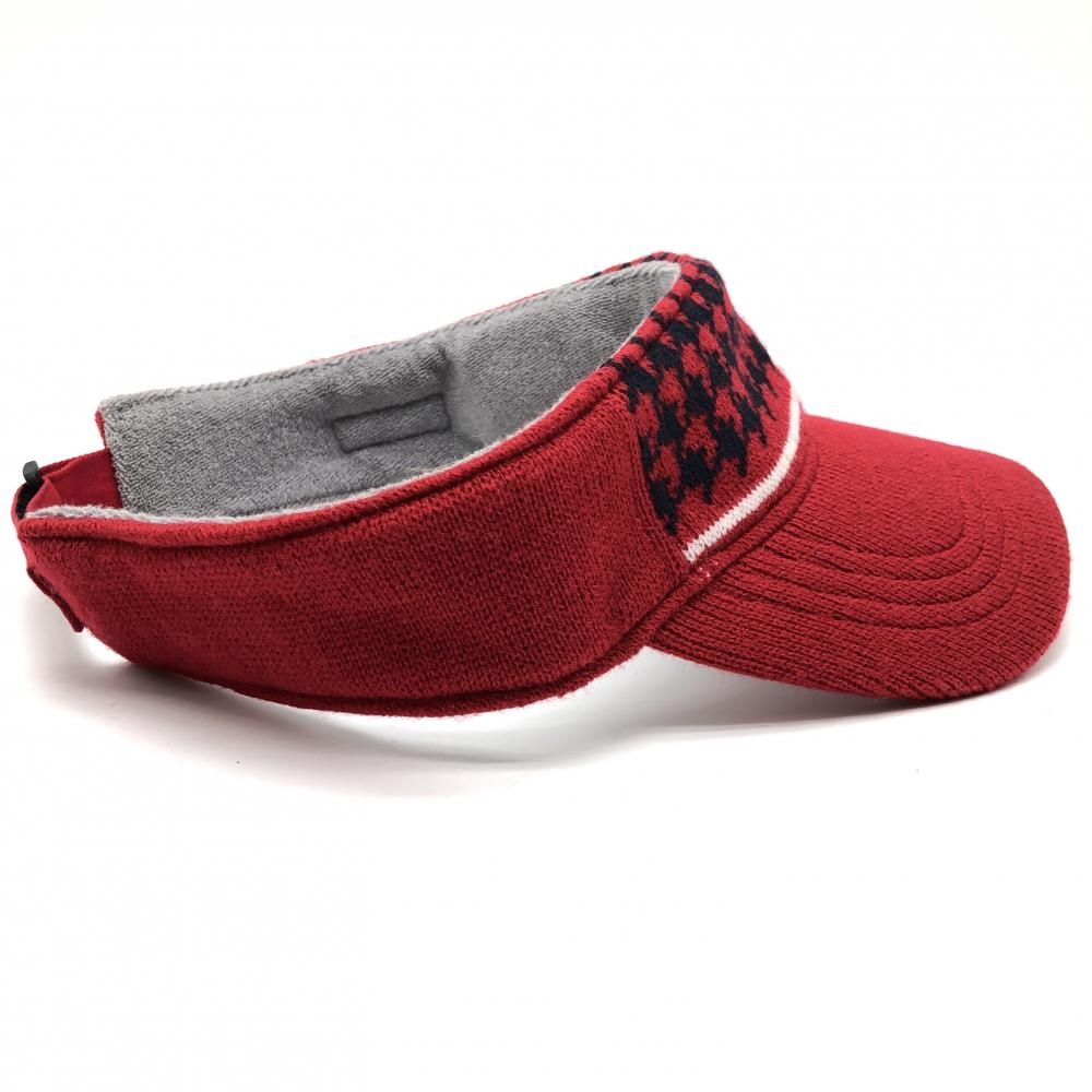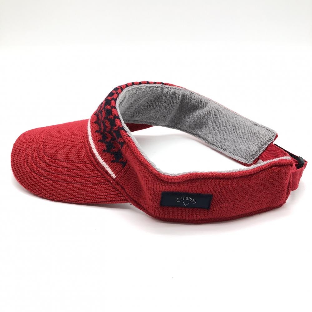 【美品】キャロウェイ ニットサンバイザー レッド×ネイビー 一部千鳥格子 ゴルフウェア Callaway
