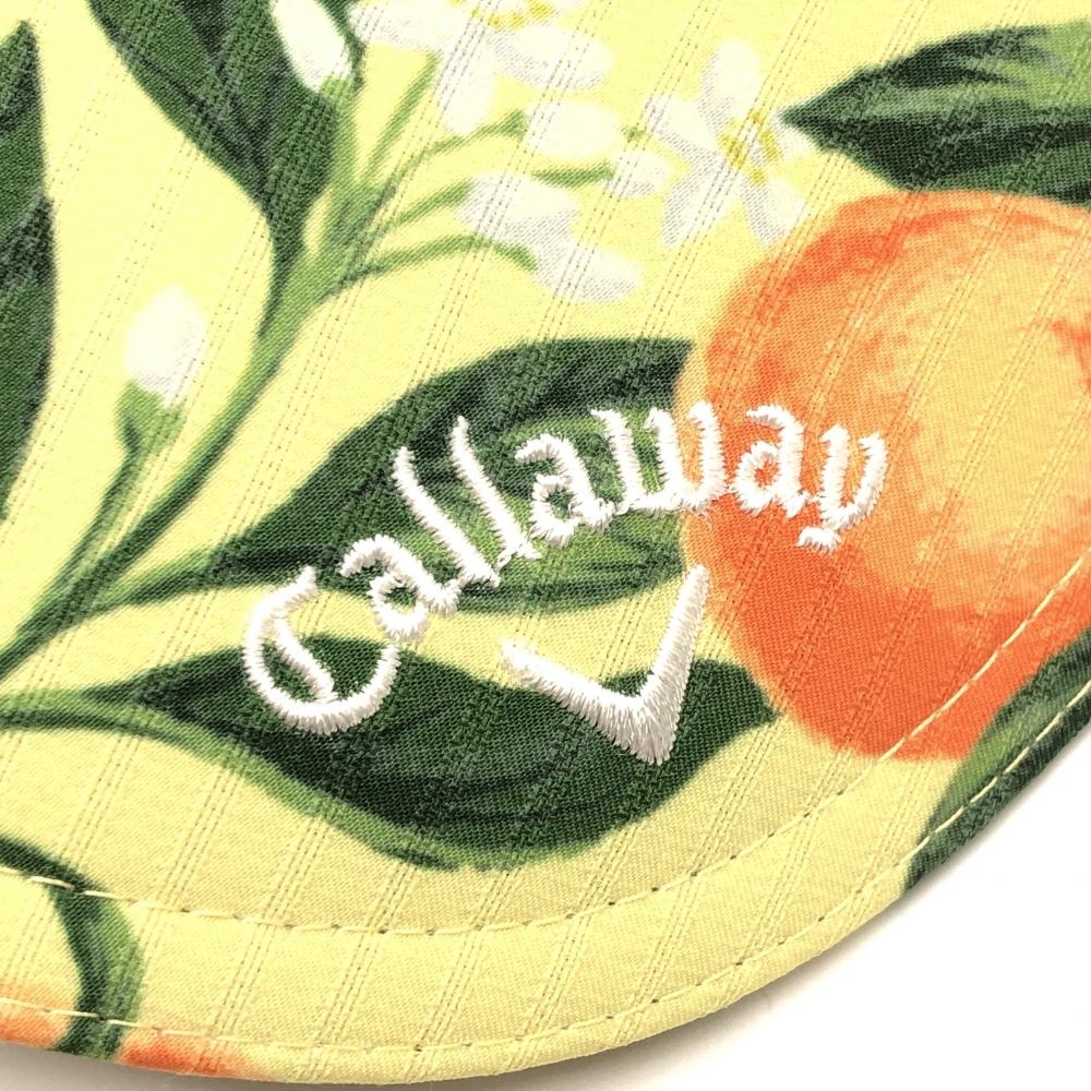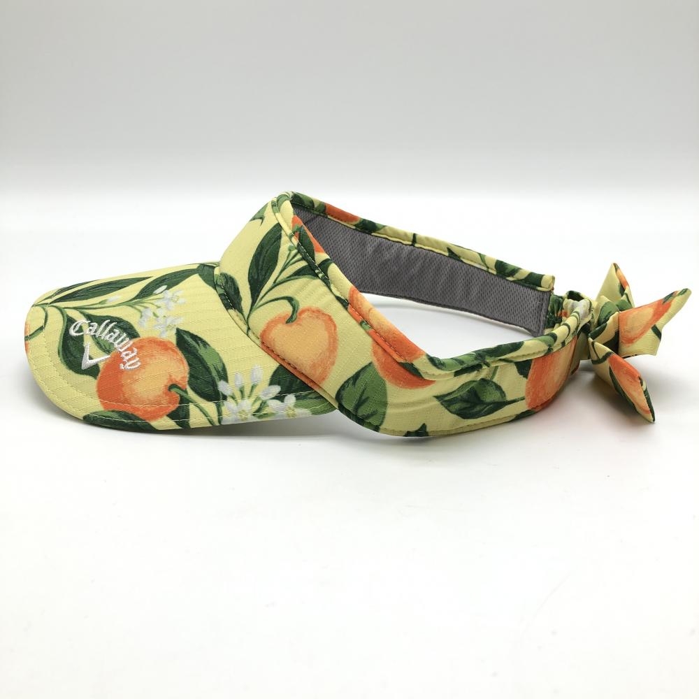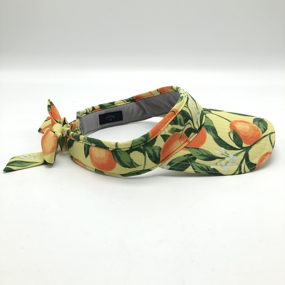 【超美品】キャロウェイ サンバイザー イエロー×グリーン オレンジ柄 小花柄 後ろリボン FR ゴルフウェア Callaway
