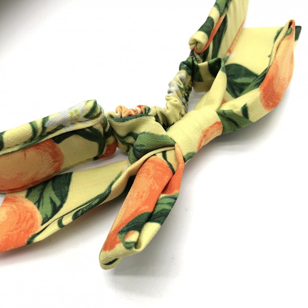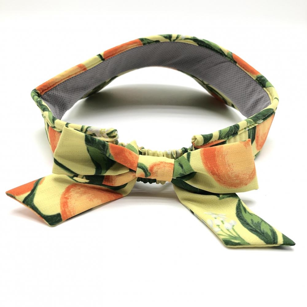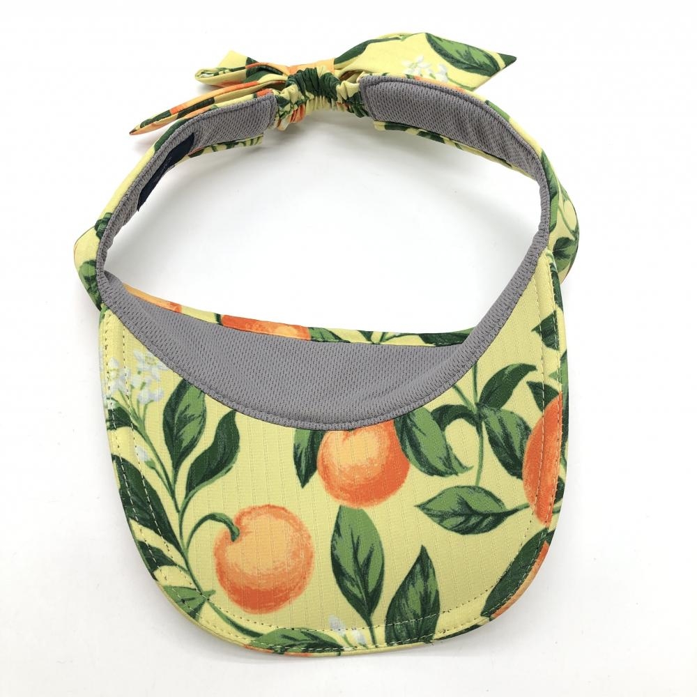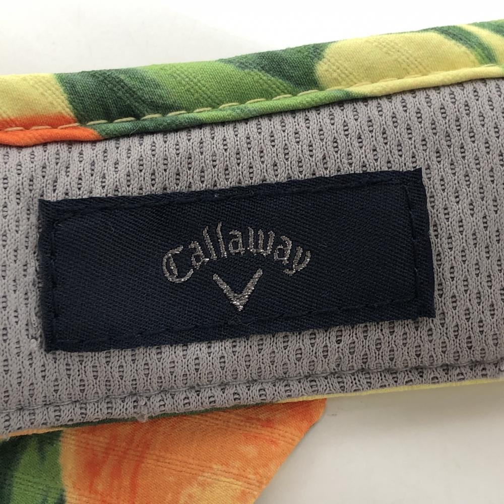 【超美品】キャロウェイ サンバイザー イエロー×グリーン オレンジ柄 小花柄 後ろリボン FR ゴルフウェア Callaway