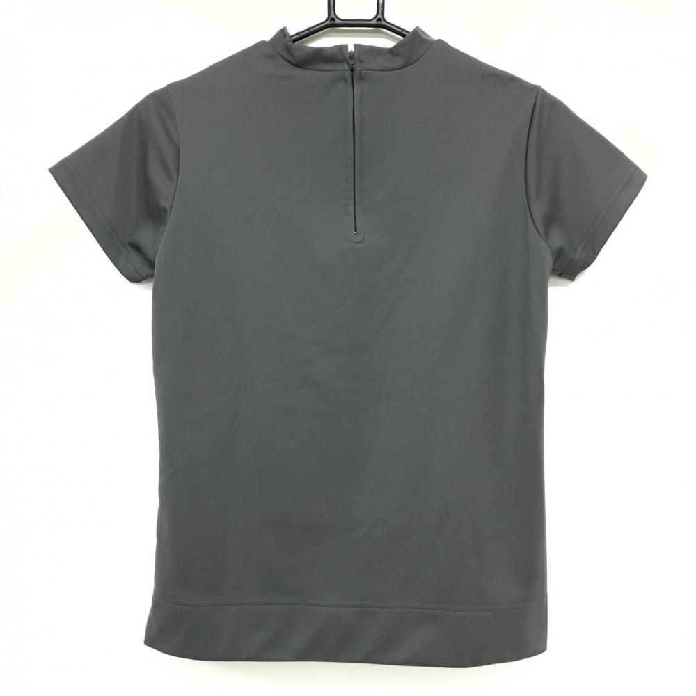【美品】パーリーゲイツ 半袖ハイネックシャツ グレー フロントロゴ バックジップ レディース 1(M) ゴルフウェア PEARLY GATES