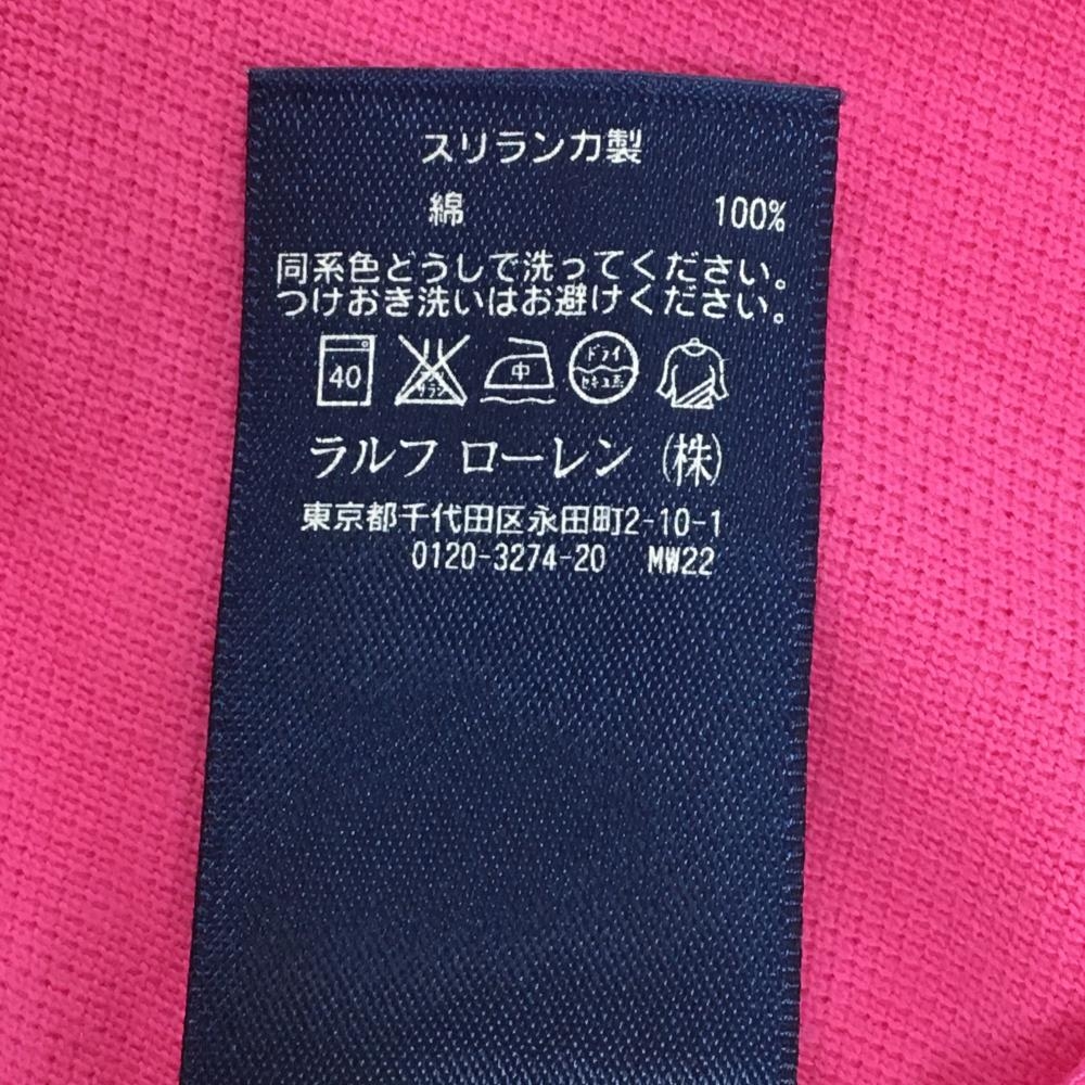 ラルフローレン 半袖ポロシャツ ピンク×グリーン ロゴ刺しゅう ポニー THE SKINNY POLO レディース XS ゴルフウェア Ralph Lauren