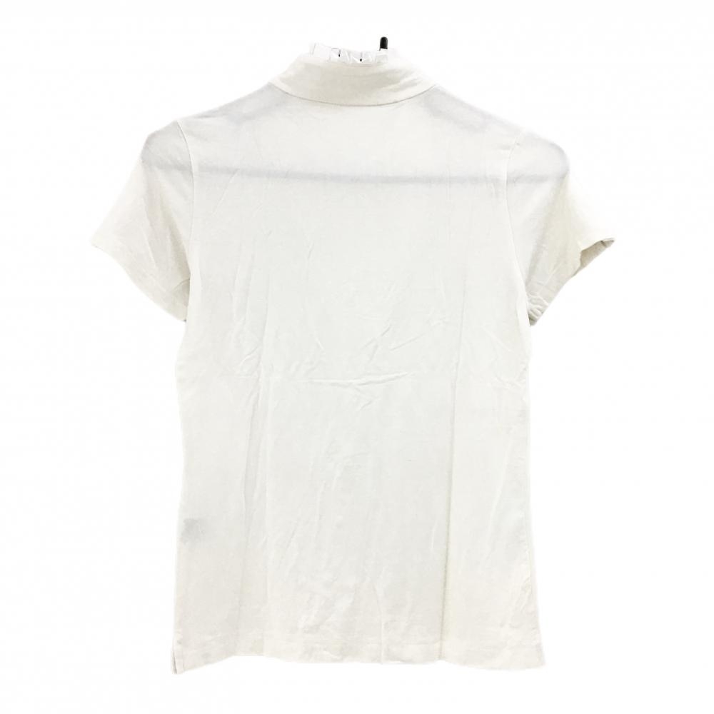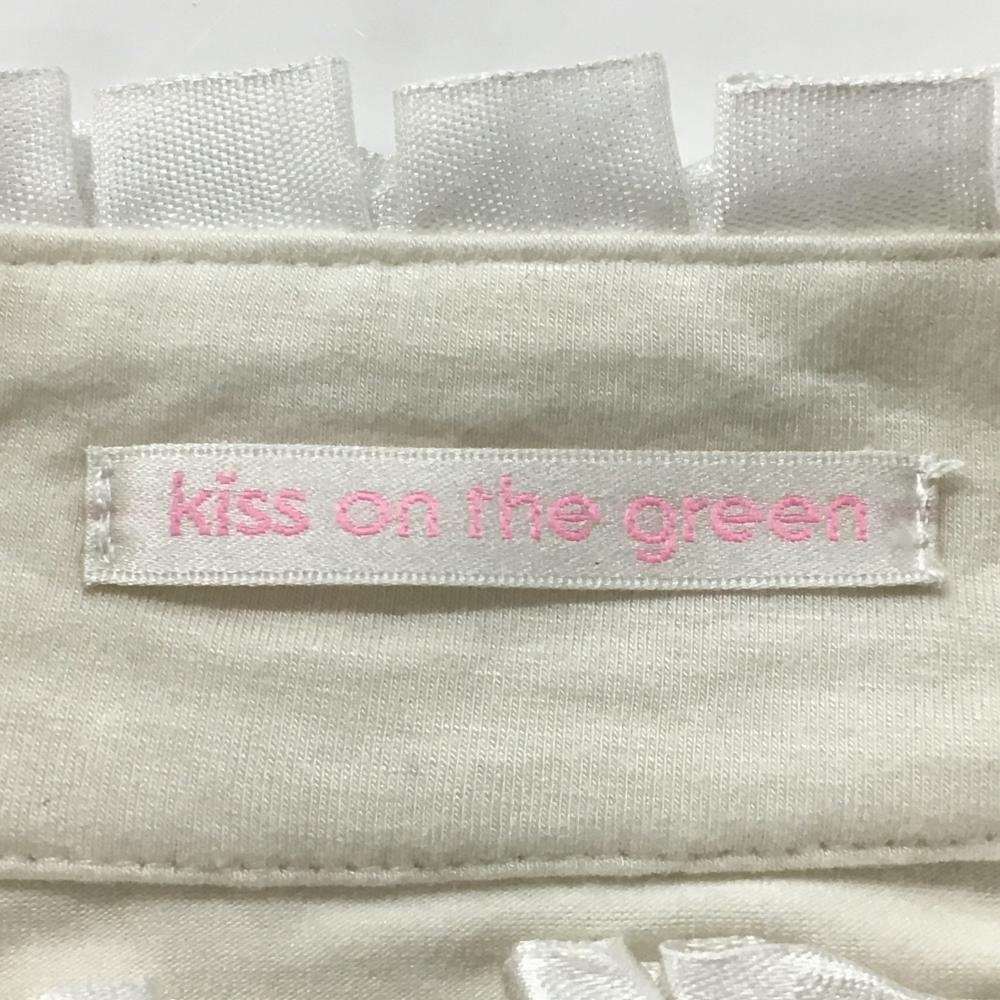【美品】キスオンザグリーン 半袖ハイネックシャツ 白 ネックフリル ロゴワッペン レディース ゴルフウェア kiss on the green