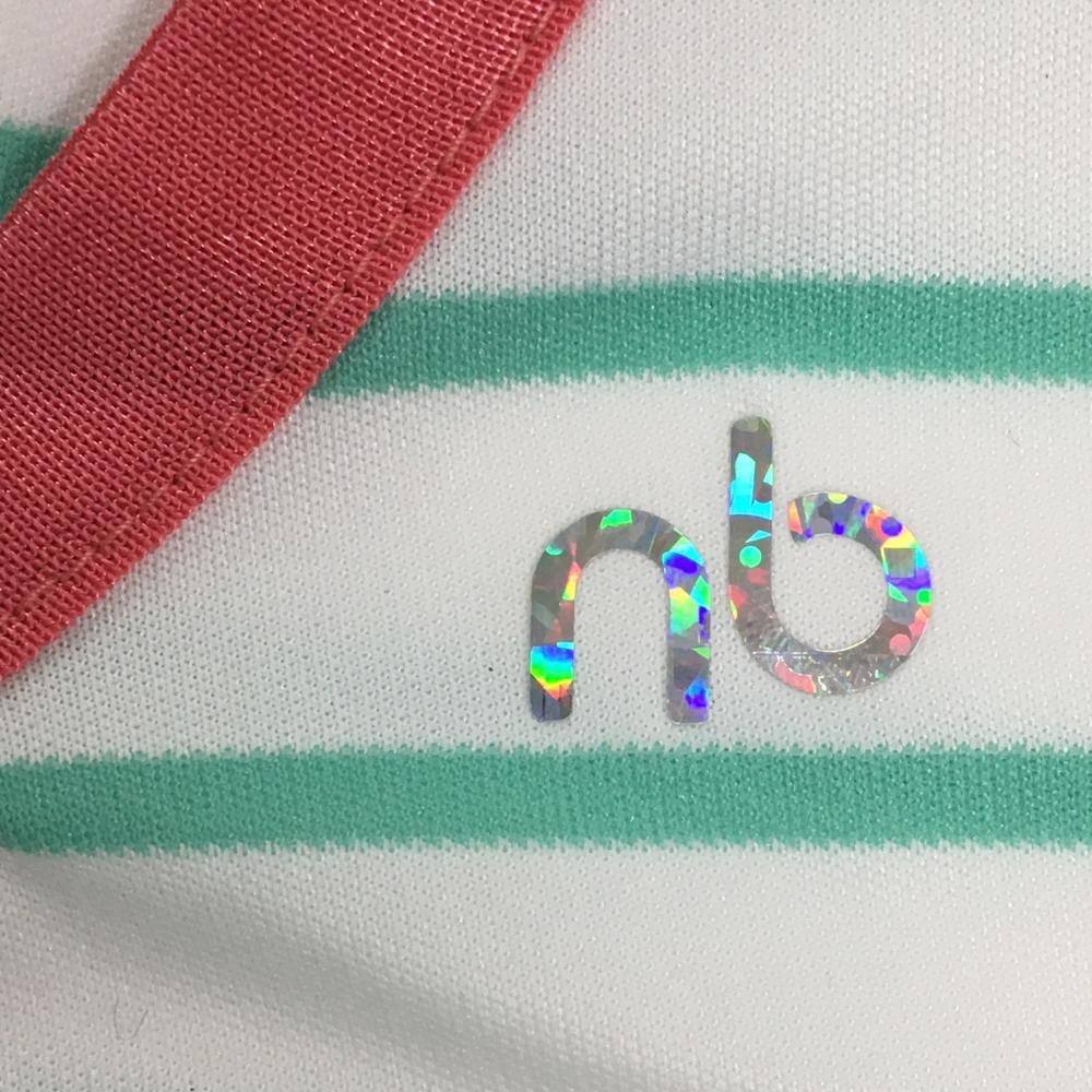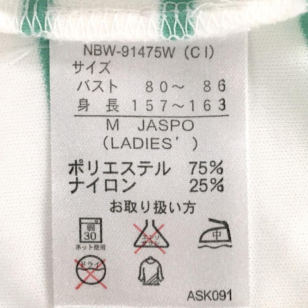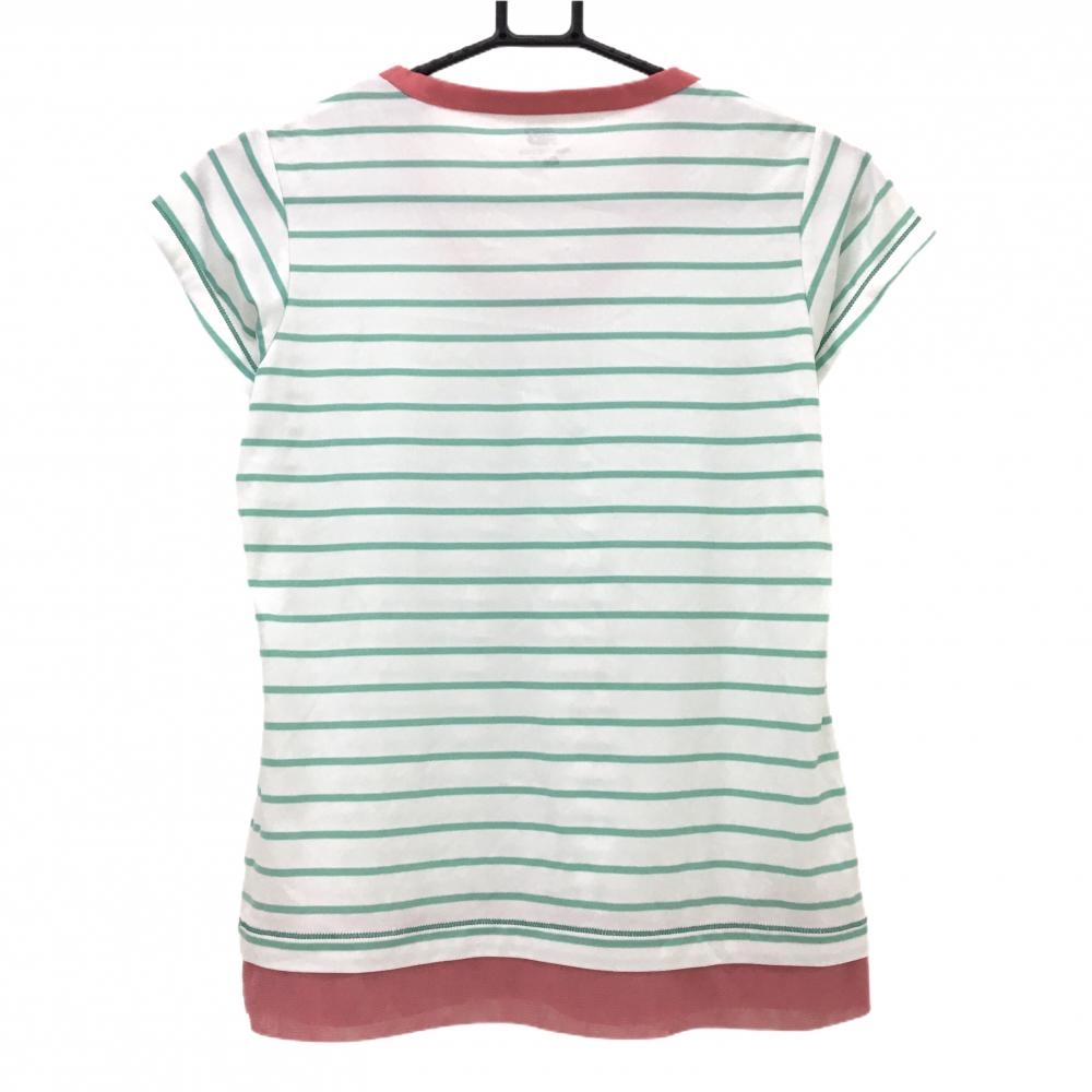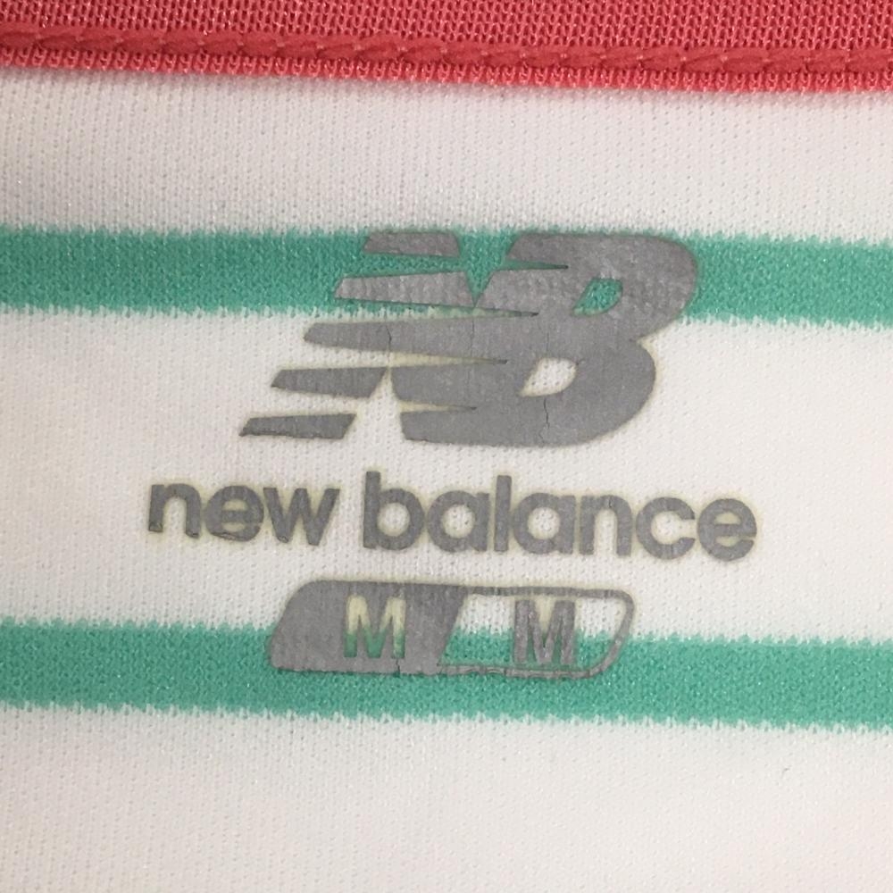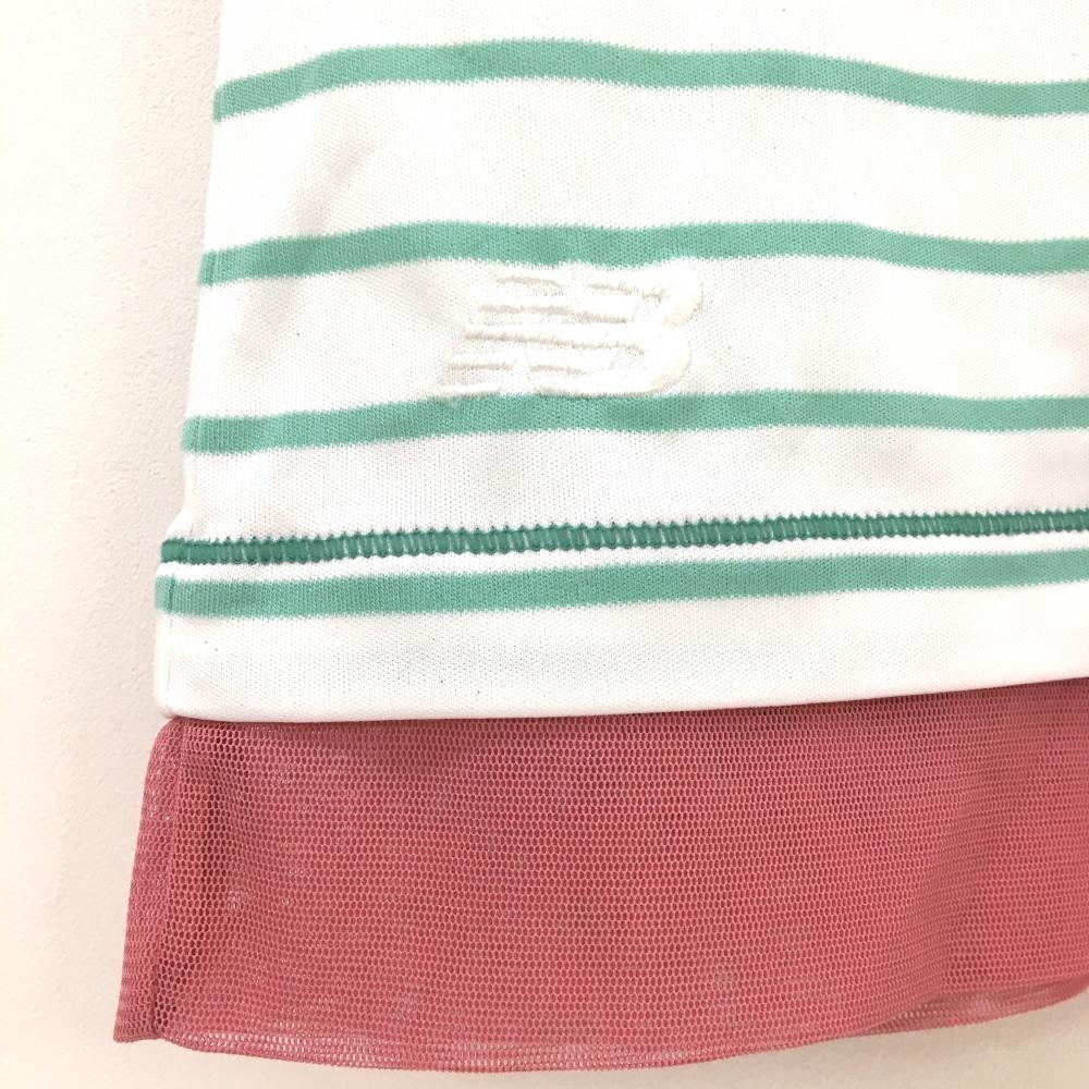 【超美品】ニューバランス Tシャツ 白×ライトグリーン ボーダー 裾メッシュ レディース M ゴルフウェア New Balance