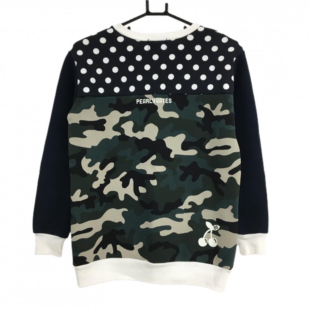 【美品】パーリーゲイツ トレーナー ダークネイビー×白×ライトグレー 上部ドット 身頃迷彩 レディース 1(M) ゴルフウェア PEARLY GATES