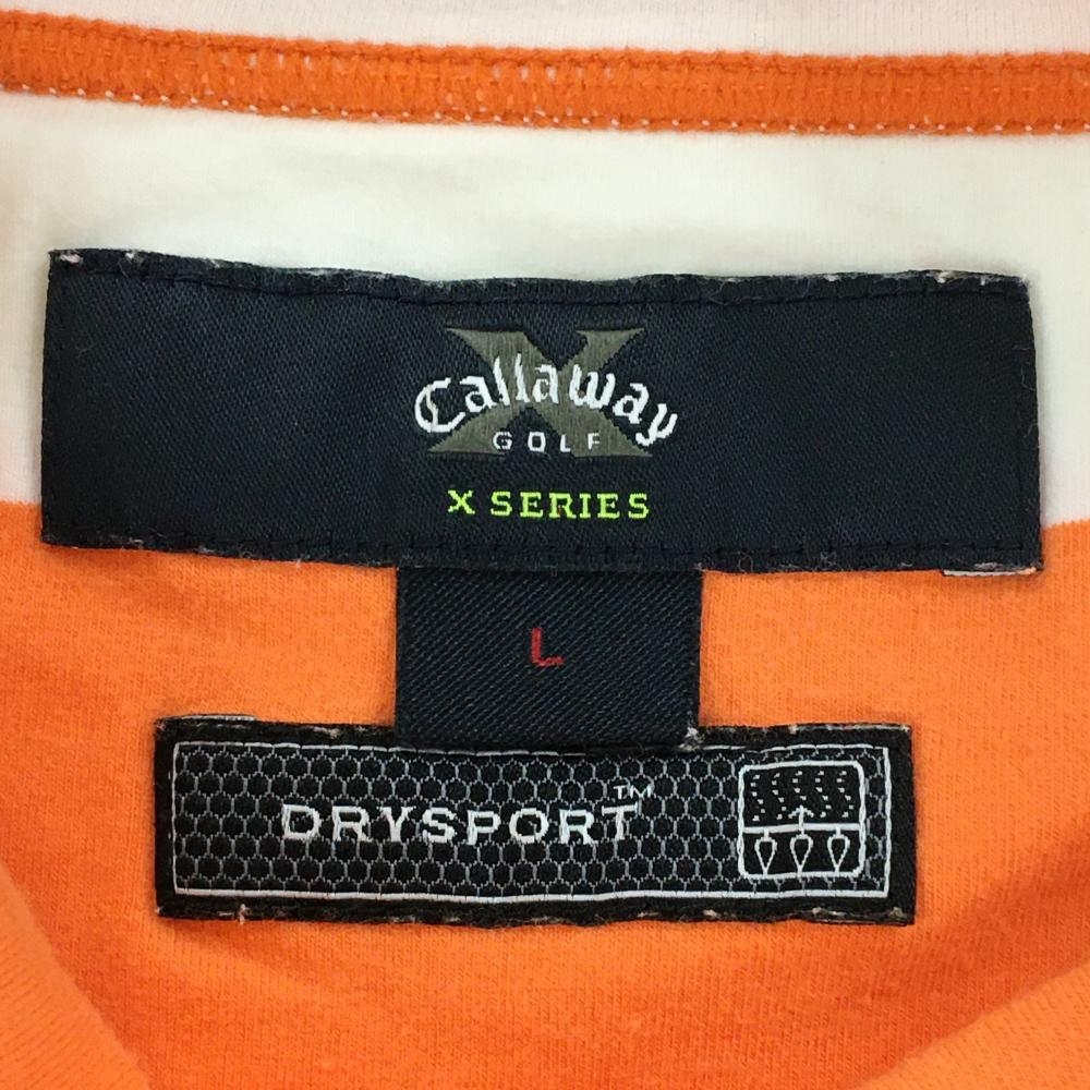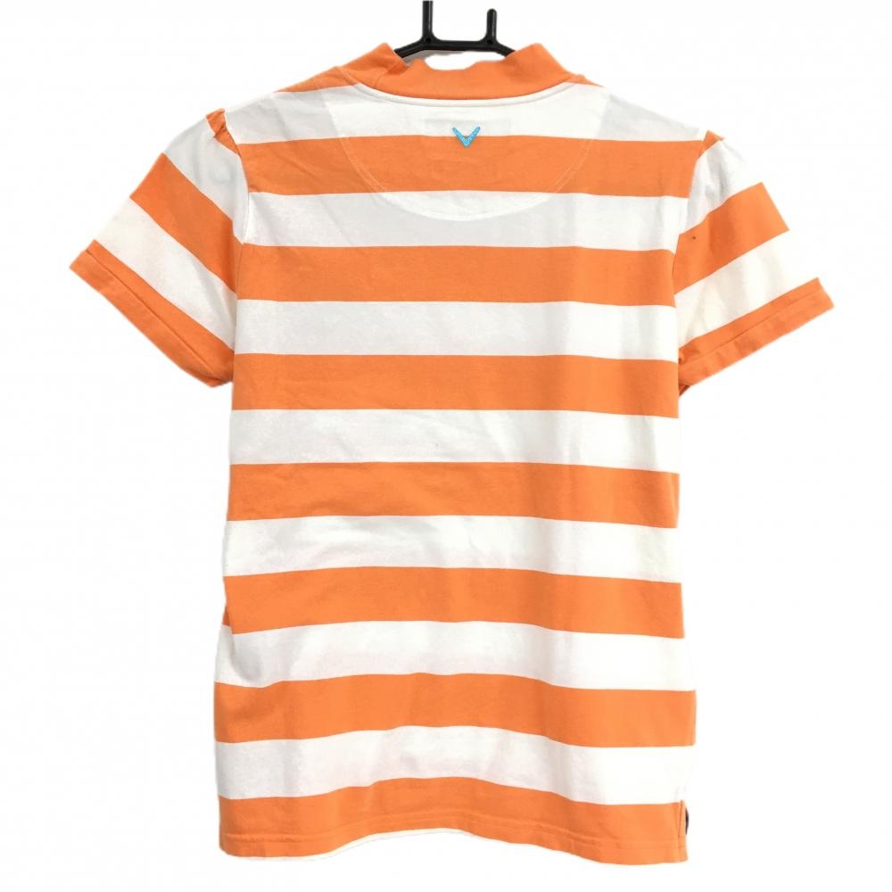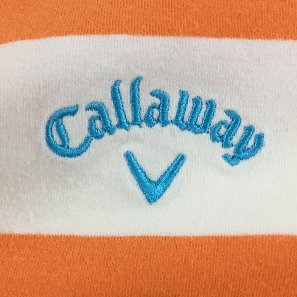 キャロウェイ 半袖ハイネックシャツ オレンジ×白 ボーダー ロゴ刺しゅう レディース L ゴルフウェア Callaway
