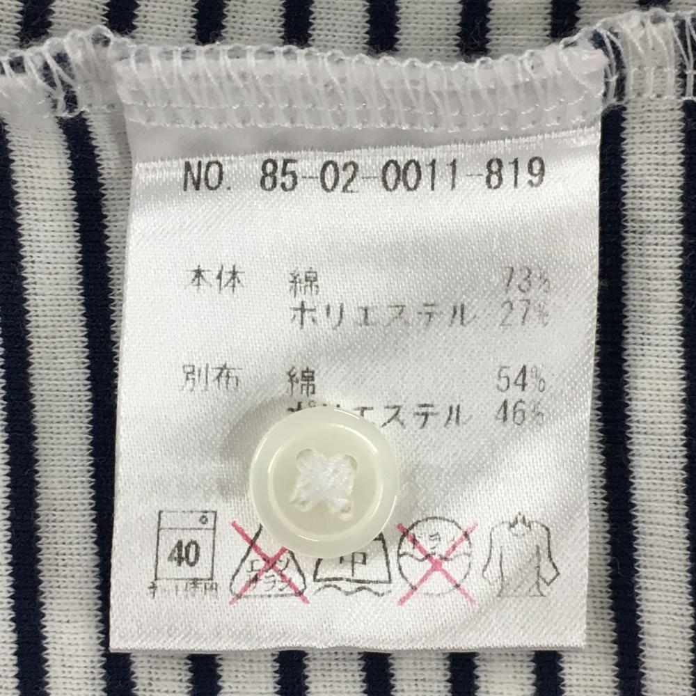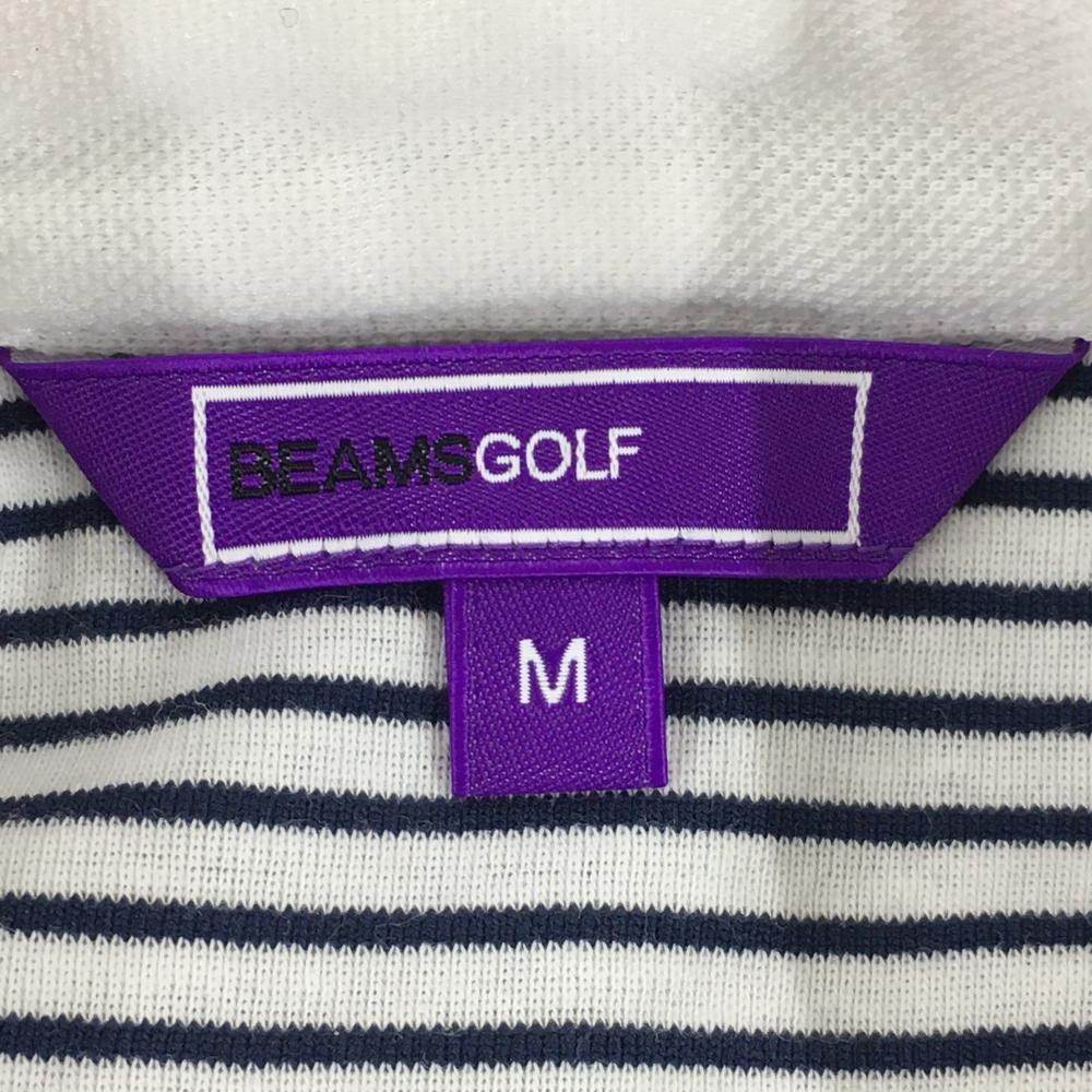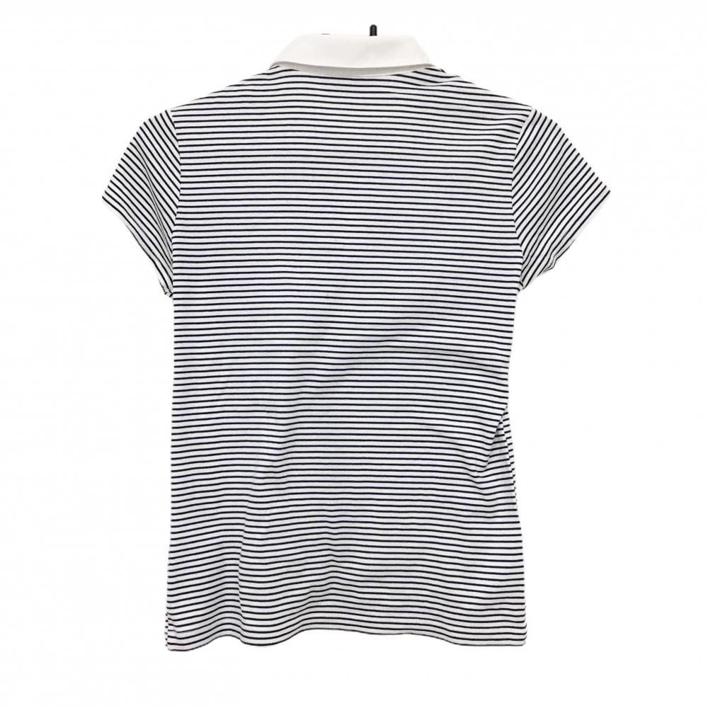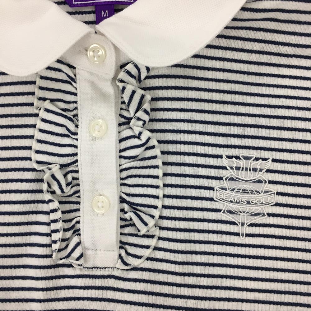 ビームスゴルフ 半袖ポロシャツ 白×黒 ボーダー 前立てフリル ロゴ刺しゅう レディース M ゴルフウェア BEAMS GOLF