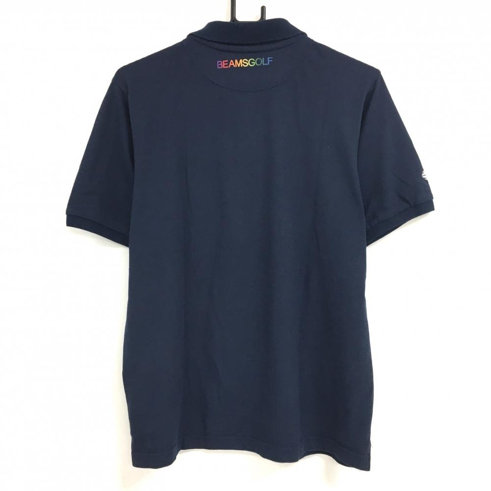 ビームスゴルフ 半袖ポロシャツ ネイビー 胸プリント メンズ L ゴルフウェア BEAMS GOLF