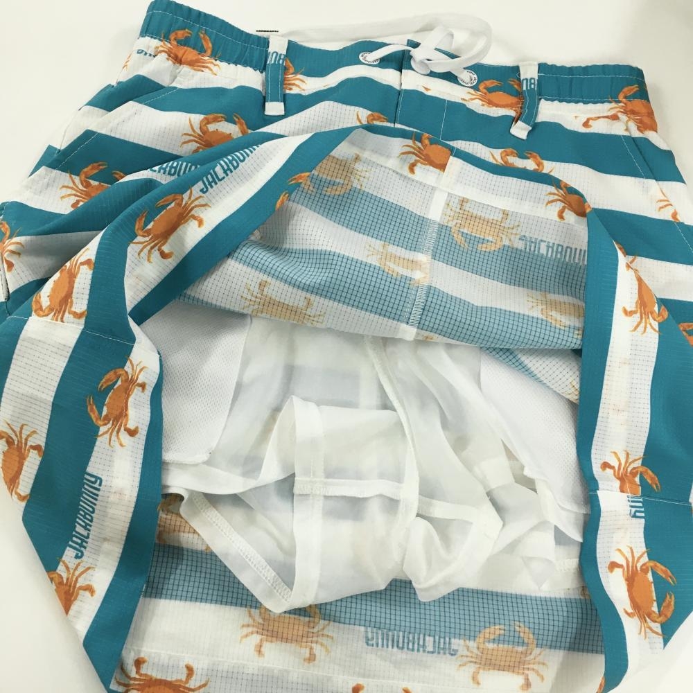 ジャックバニー スカート ライトブルー×白 ボーダー カニ柄 メッシュ調生地 レディース 2(L) ゴルフウェア 2023年モデル Jack Bunny