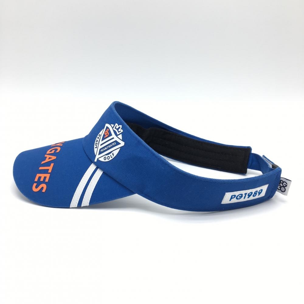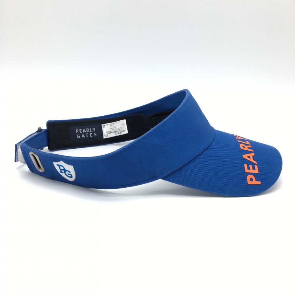 【超美品】パーリーゲイツ サンバイザー ブルー×オレンジ つばロゴプリント 30周年 FR ゴルフウェア PEARLY GATES
