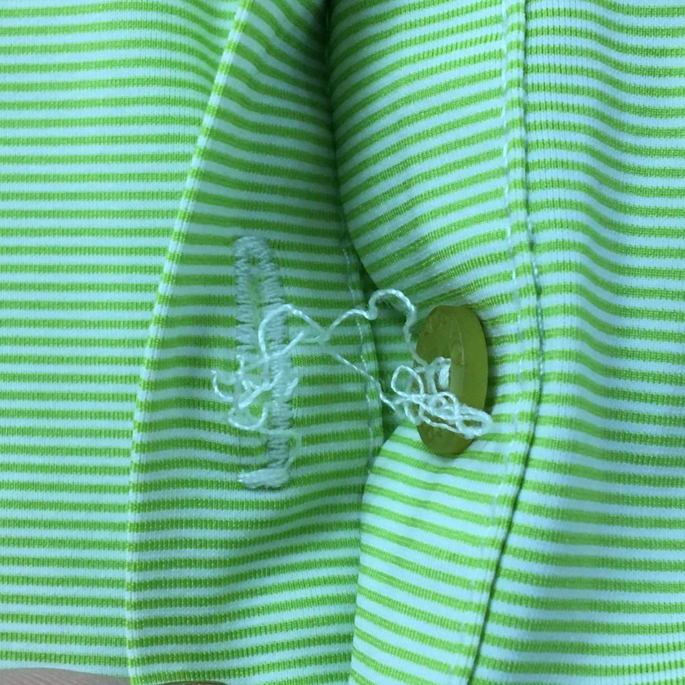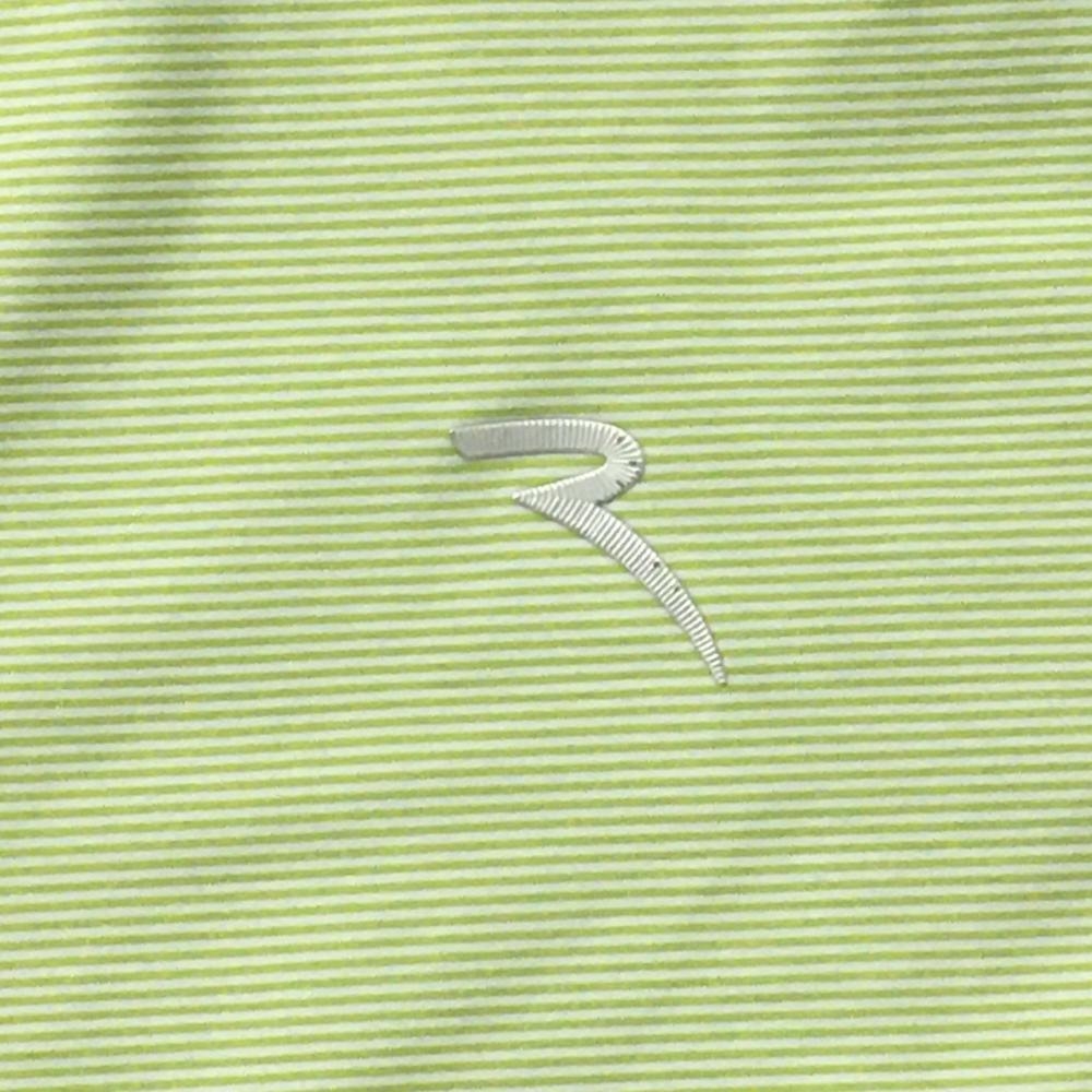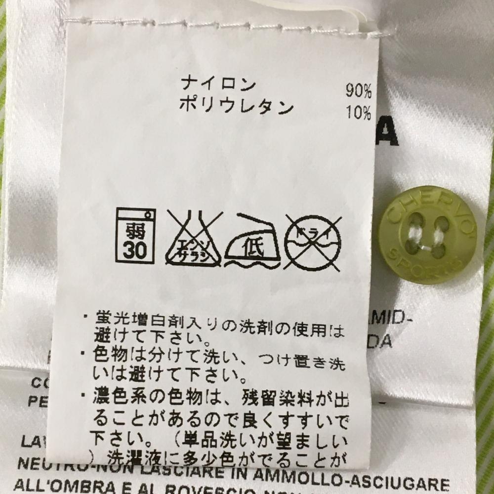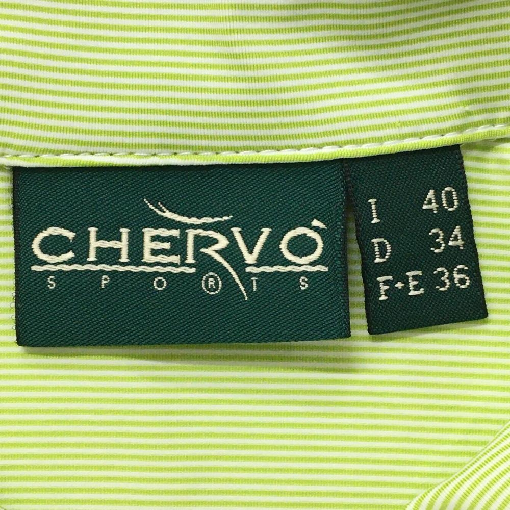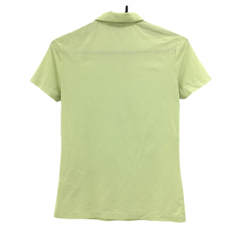 【美品】シェルボ 半袖ポロシャツ ライトグリーン×白 細ボーダー 胸元ロゴ レディース USA-XS4 ゴルフウェア CHERVO