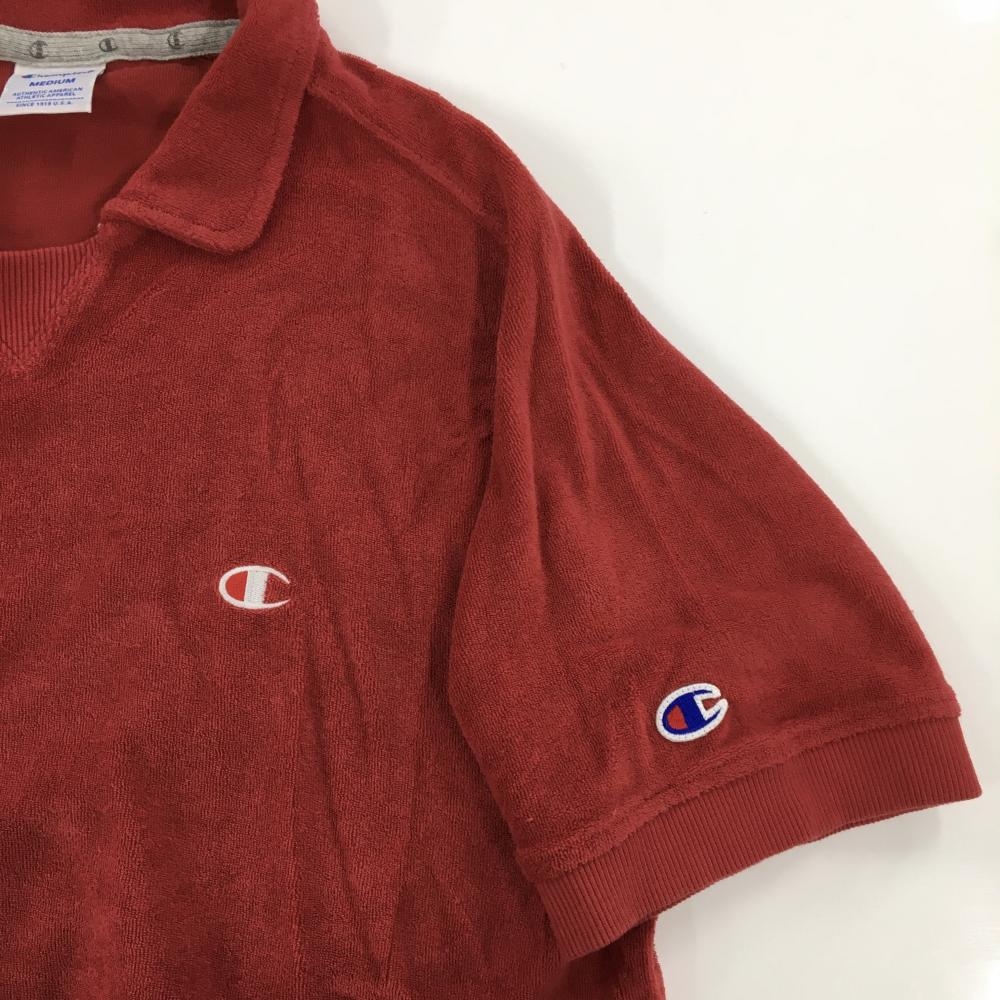 【美品】チャンピオン 襟付きTシャツ レッド パイル生地 ロゴ刺しゅう メンズ MEDIUM ゴルフウェア Champion