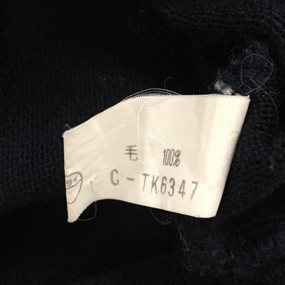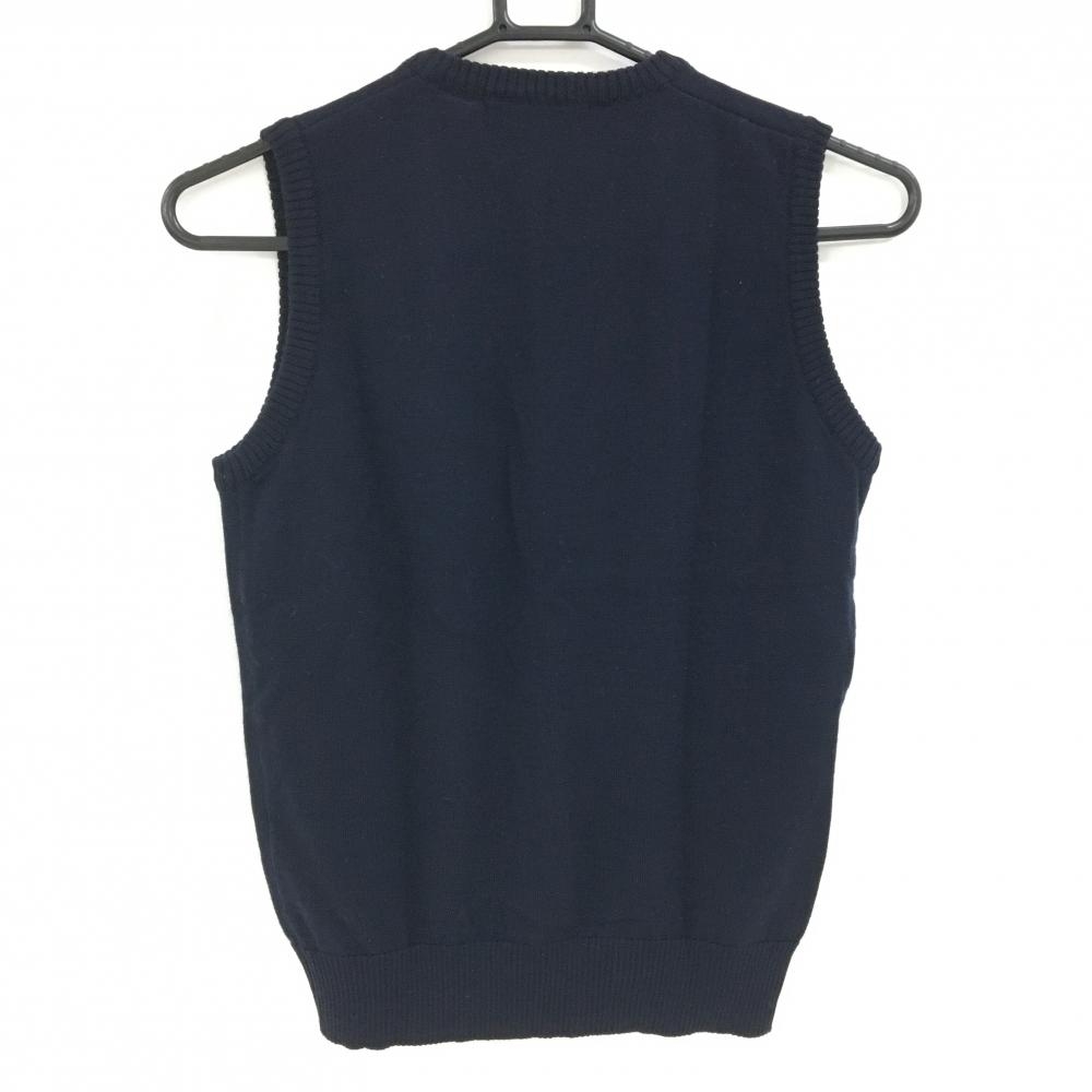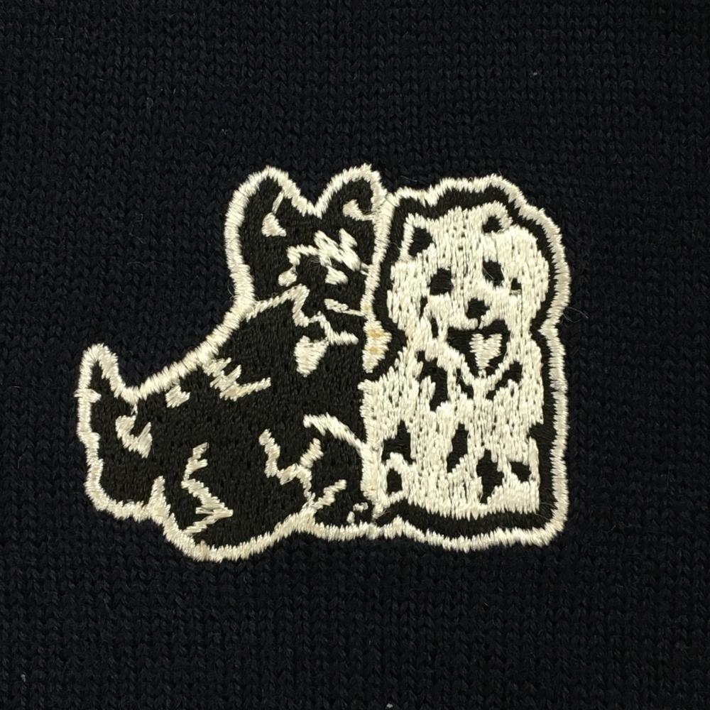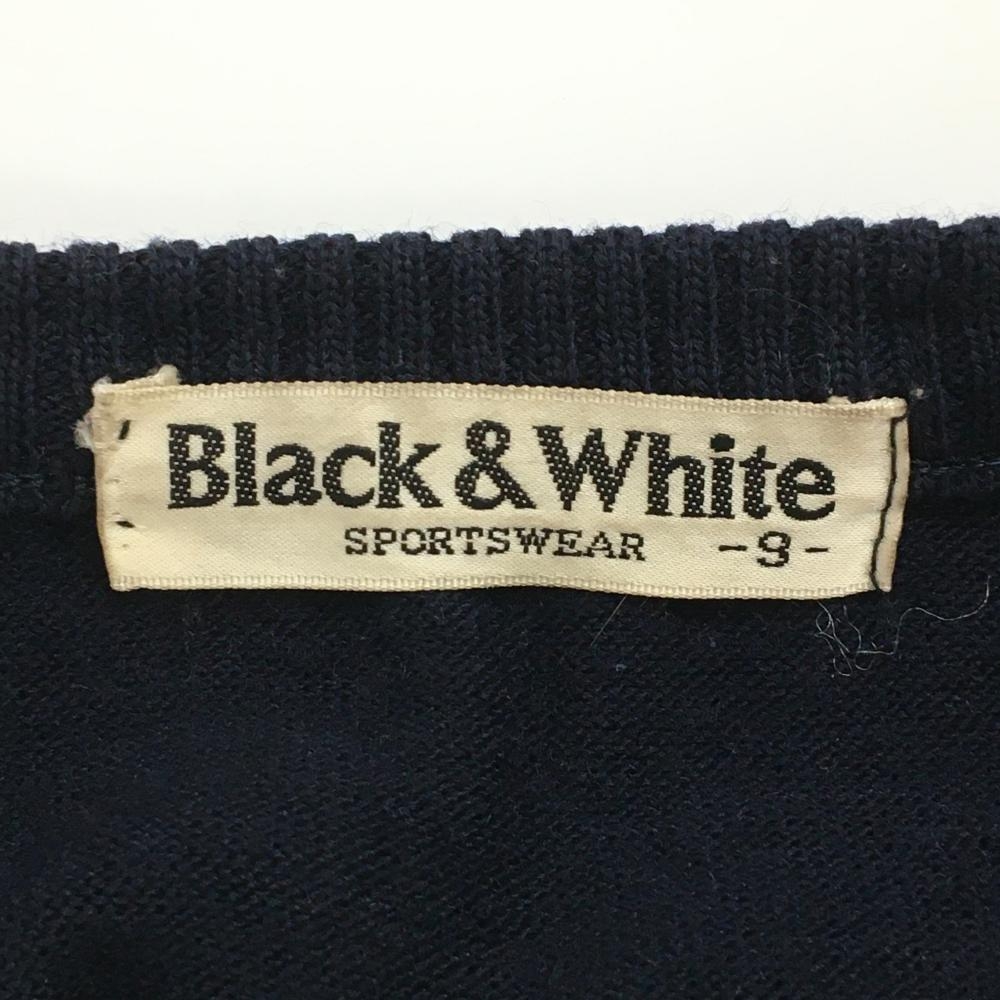 【美品】ブラックアンドホワイト ニットベスト ネイビー 犬刺しゅう Vネック ウール100% レディース 9 ゴルフウェア Black&White