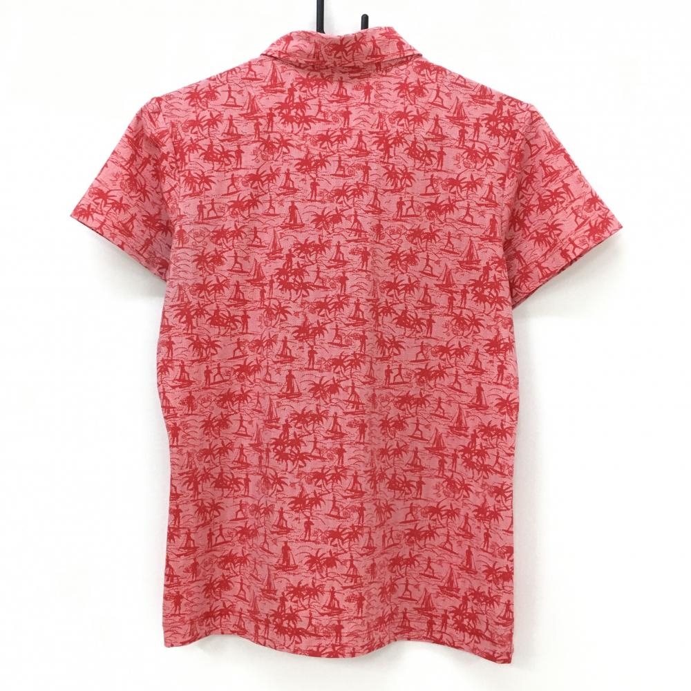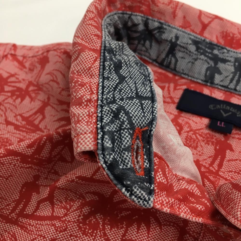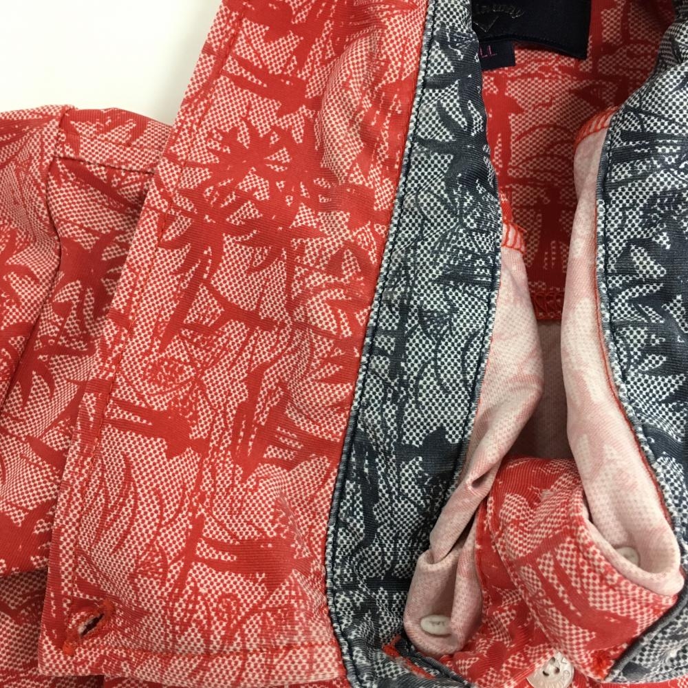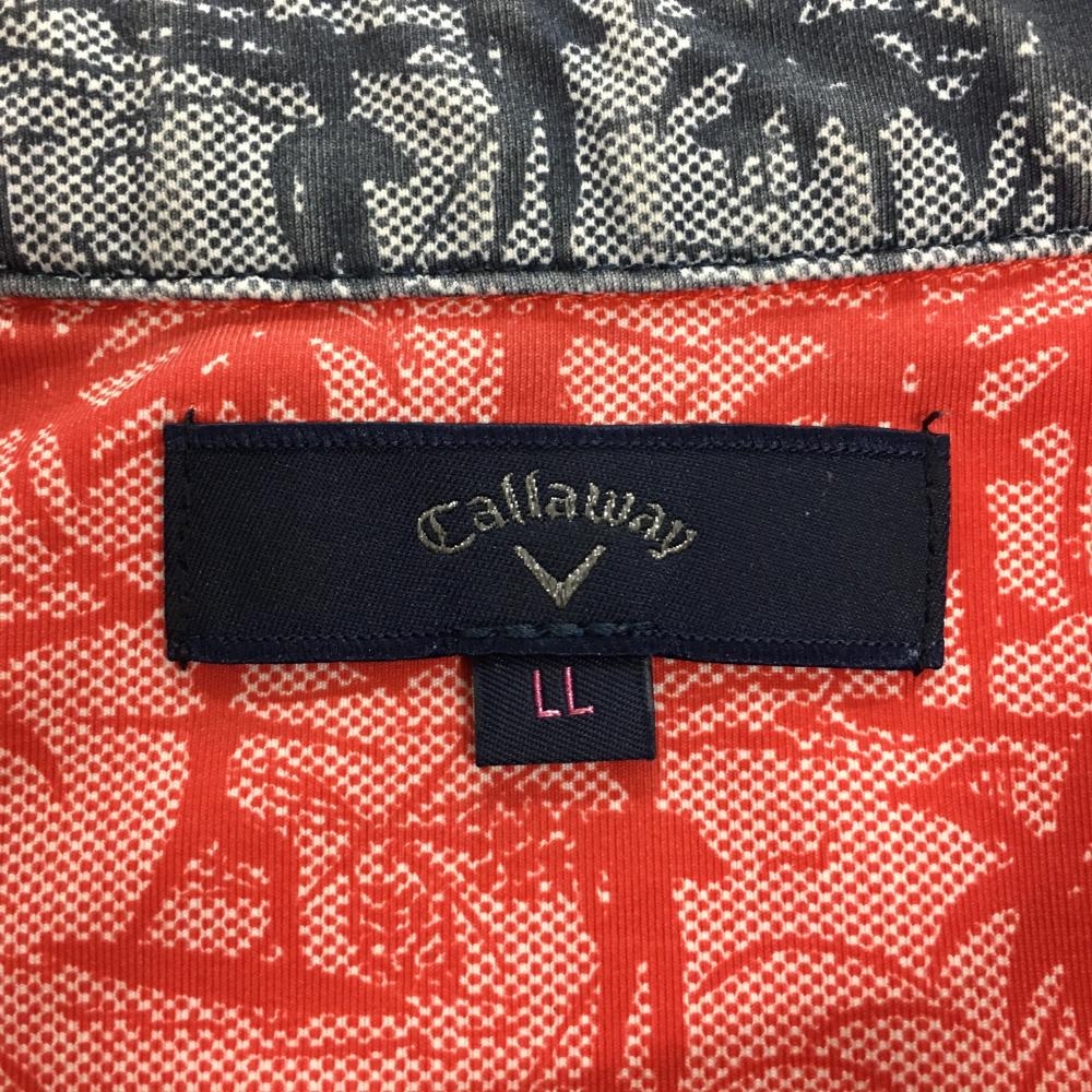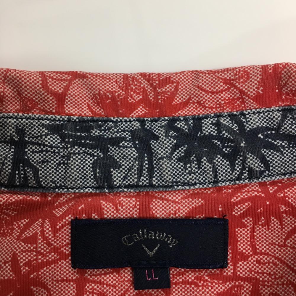 キャロウェイ 半袖ポロシャツ レッド ロゴネイビー 総柄 ヤシの木 レディース LL ゴルフウェア Callaway