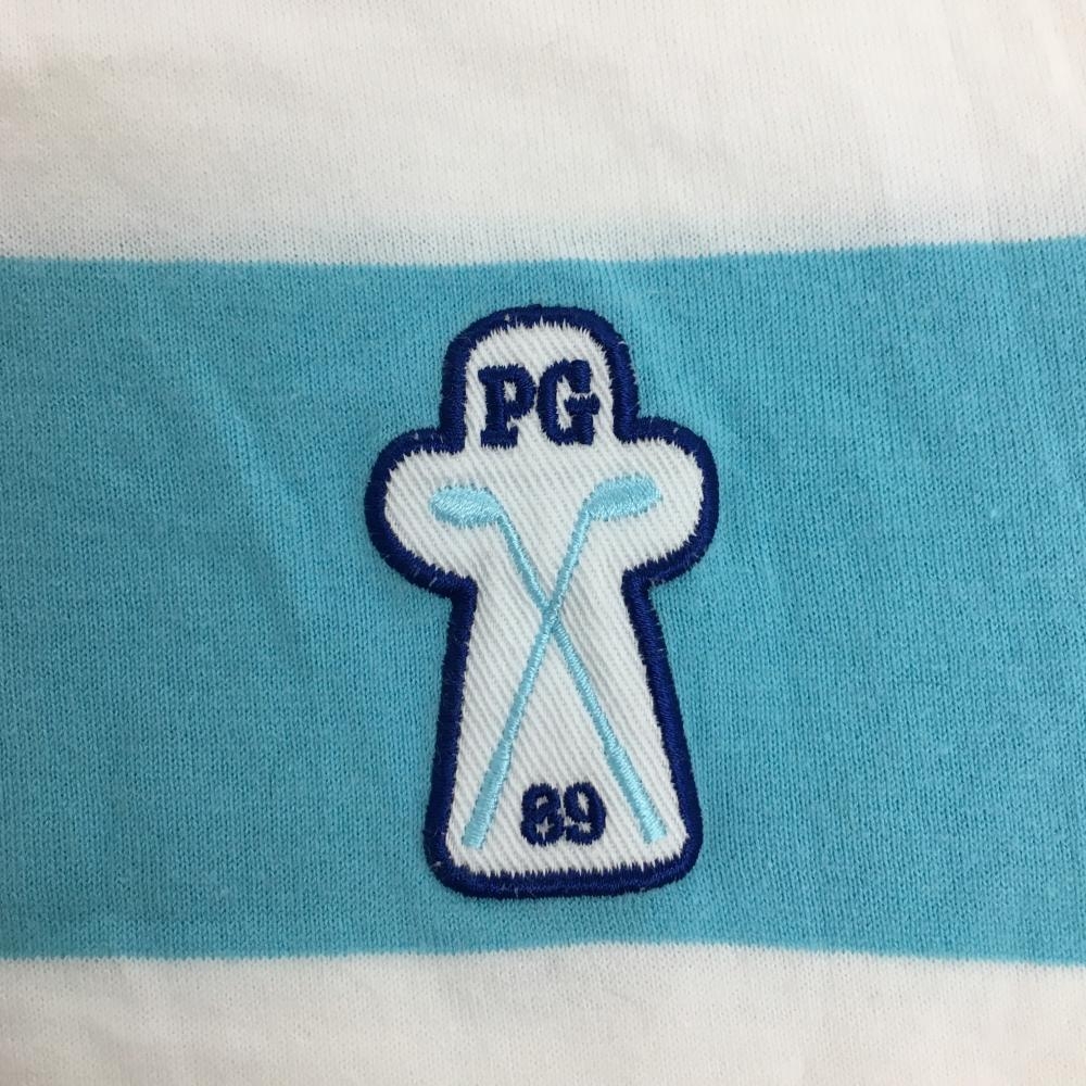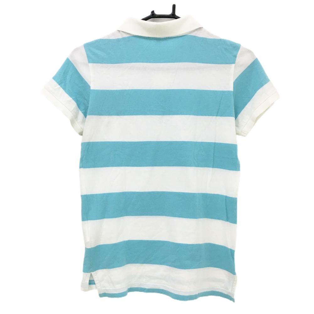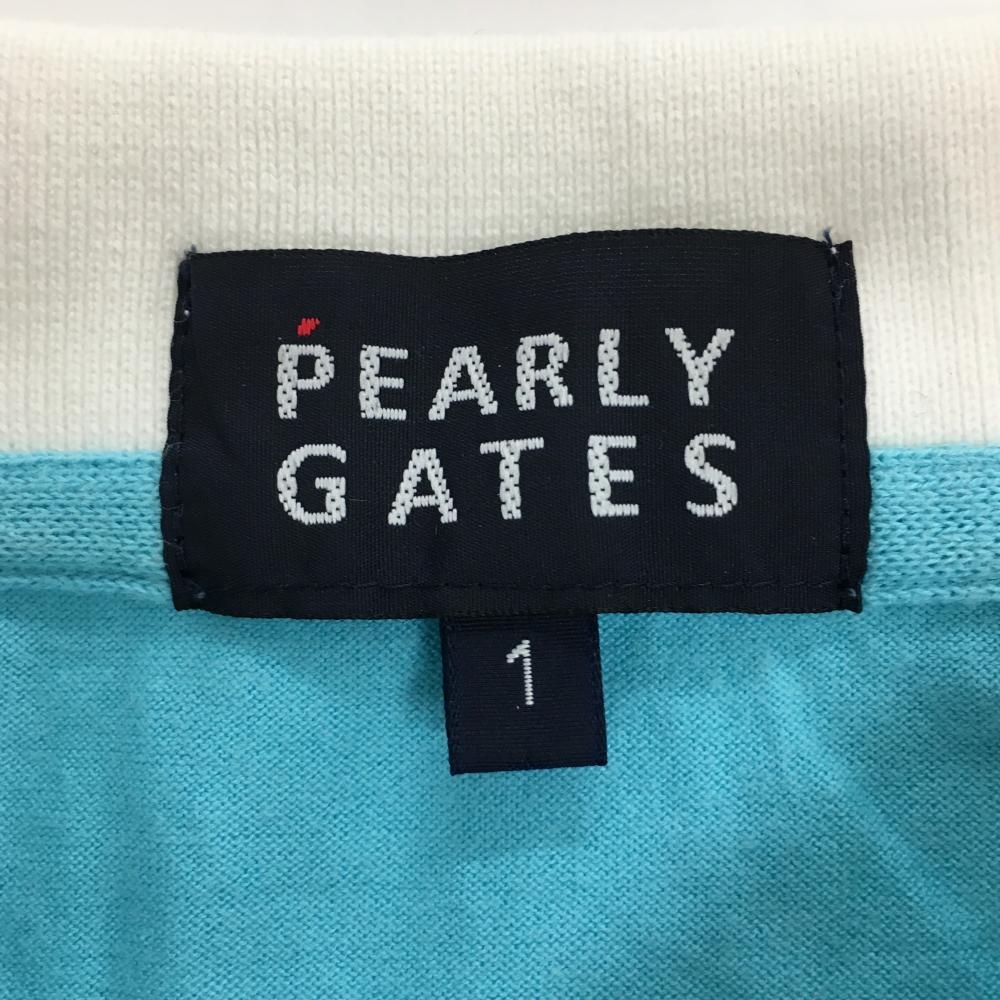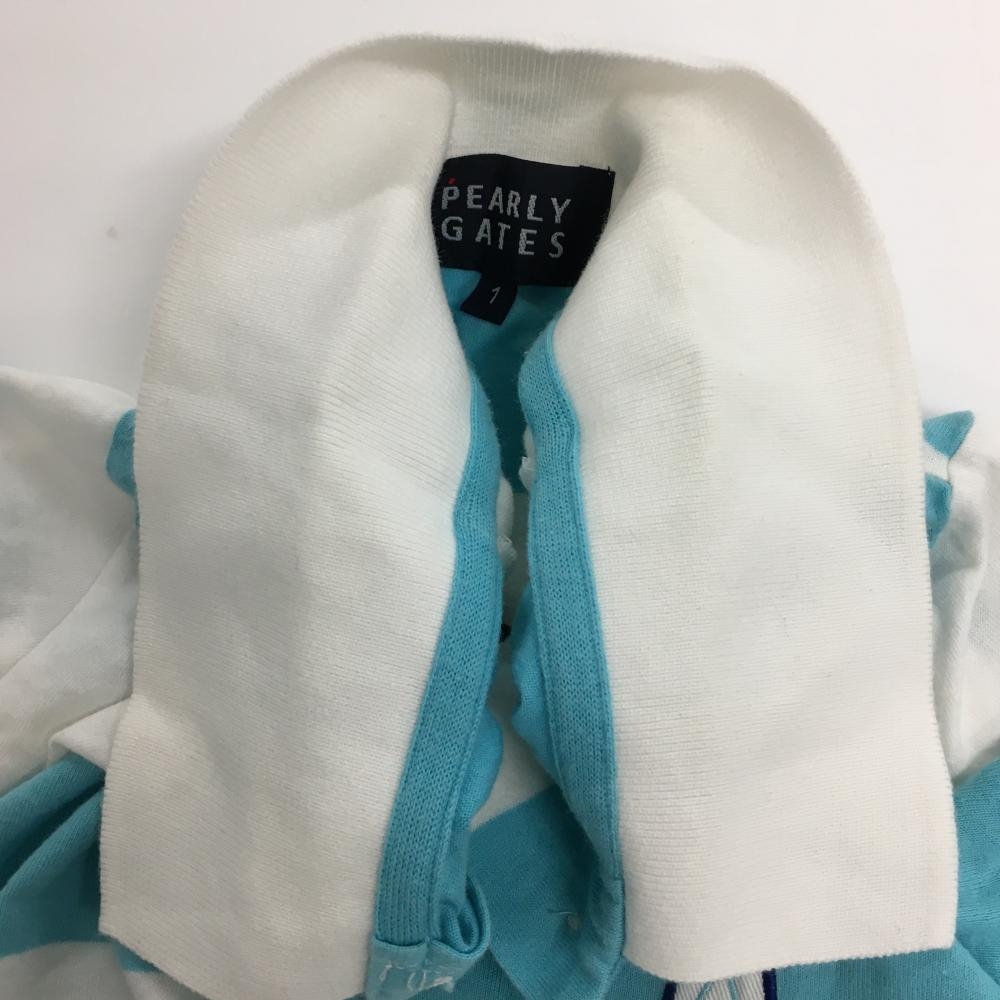 パーリーゲイツ 半袖ポロシャツ 白×ライトブルー ボーダー レディース 1(M) ゴルフウェア PEARLY GATES