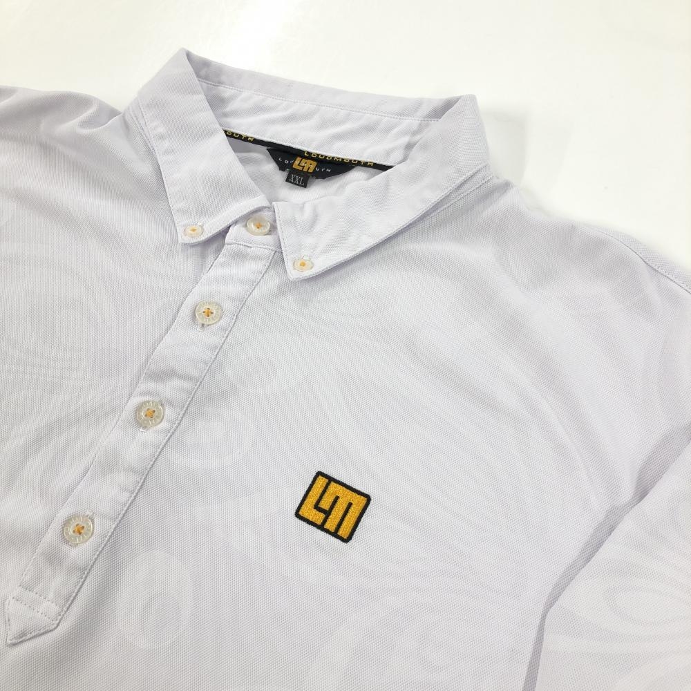 【超美品】ラウドマウス 半袖ポロシャツ 白 総柄 シャガデリック ボタンダウン メンズ XXL ゴルフウェア 大きいサイズ LOUDMOUTH