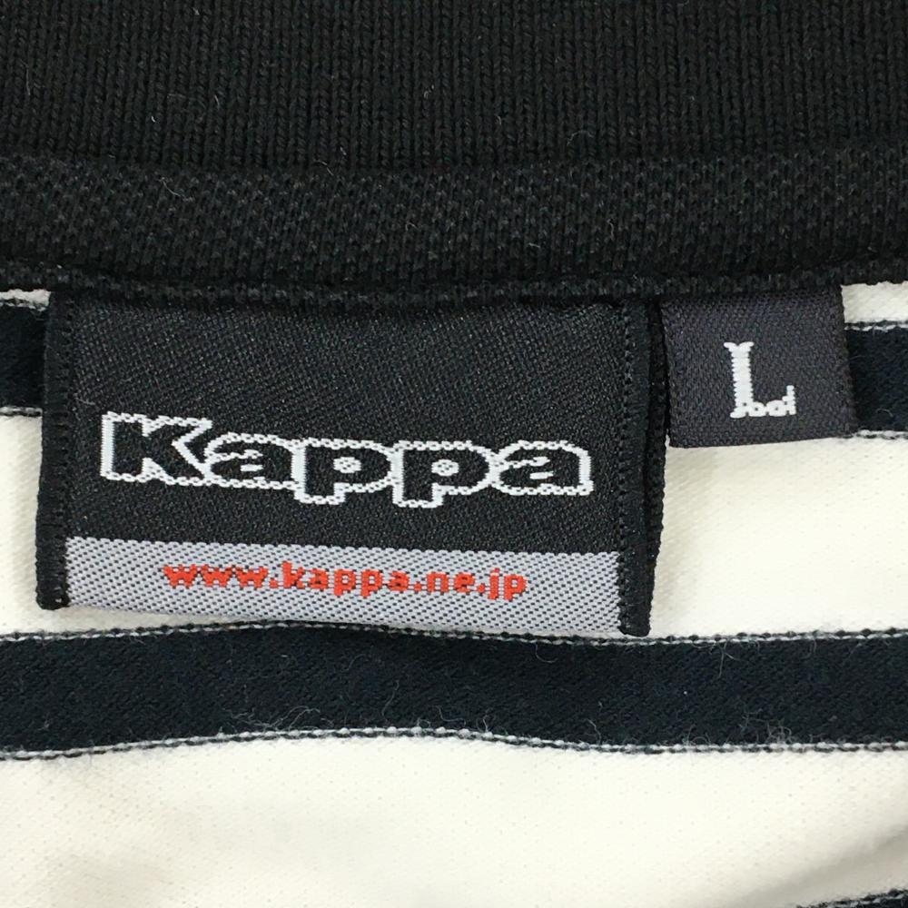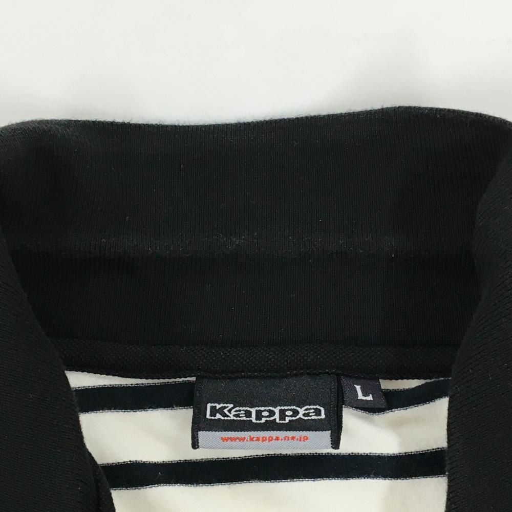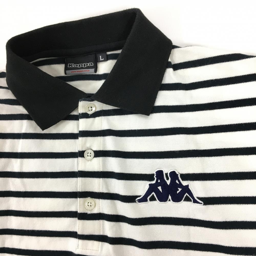 カッパ 半袖ポロシャツ 白×黒 ボーダー ロゴ刺しゅう メンズ L ゴルフウェア Kappa