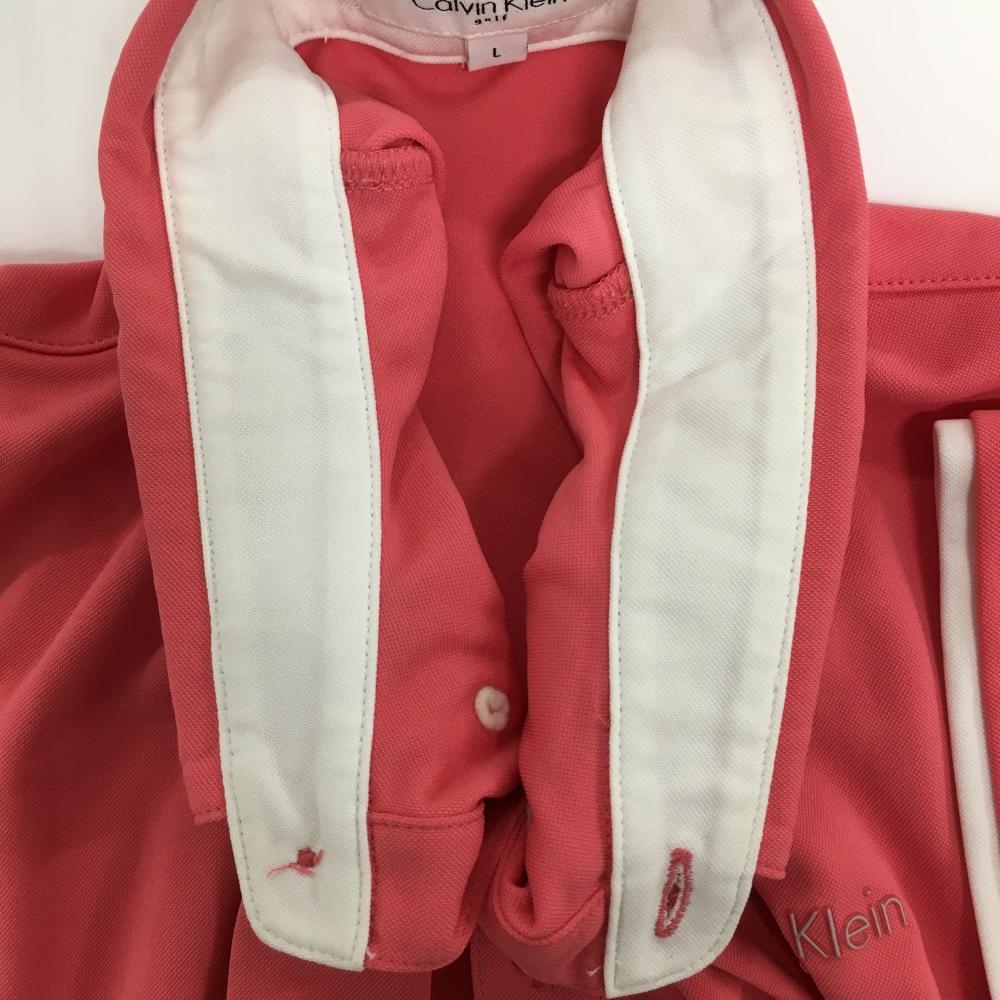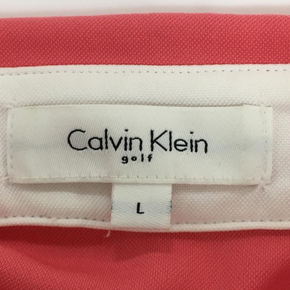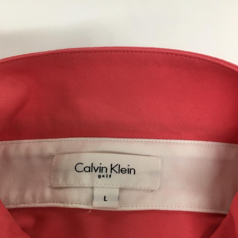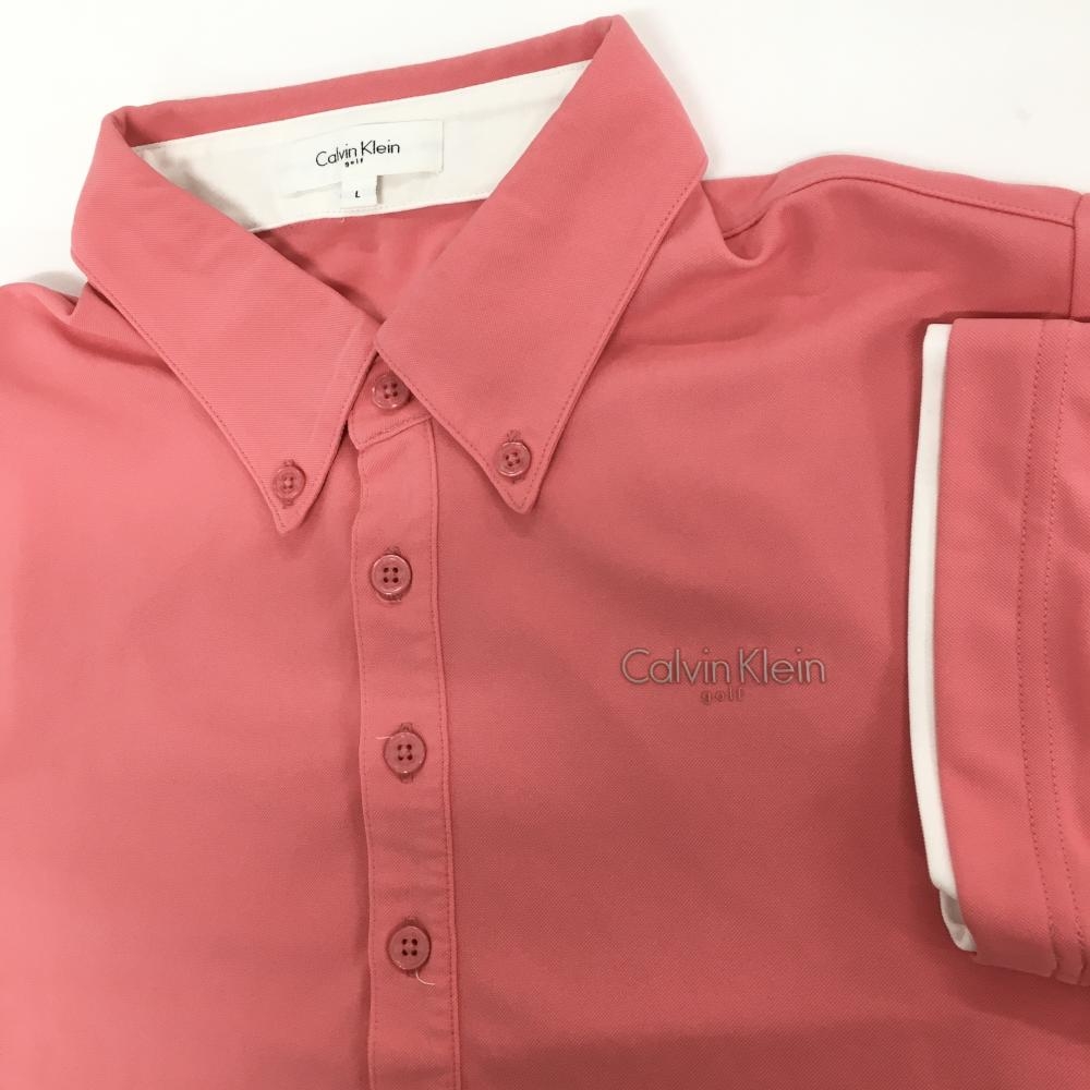 【美品】カルバンクラインゴフル 半袖ポロシャツ サーモンピンク ボタンダウン 胸ロゴ メンズ L ゴルフウェア Calvin Klein golf
