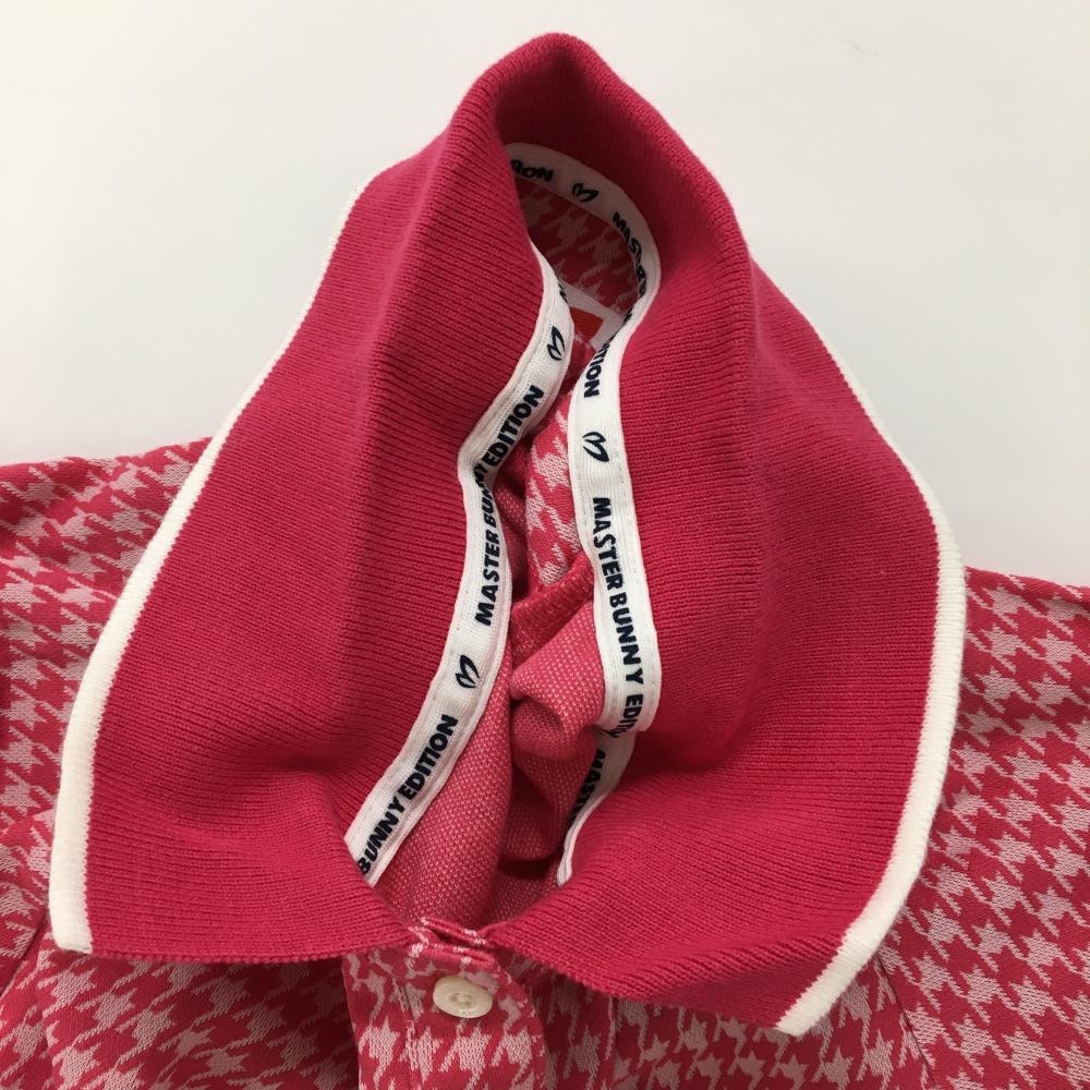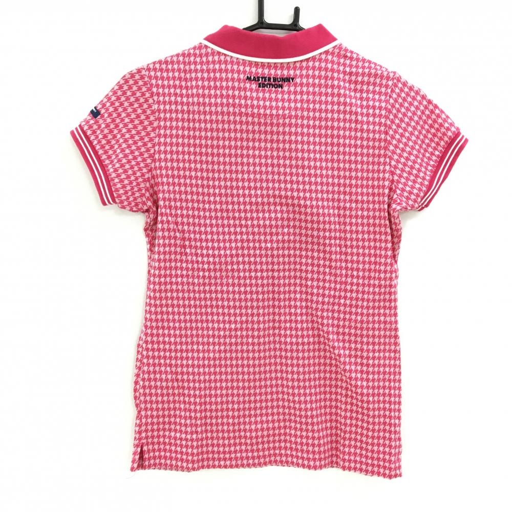 【美品】マスターバニー 半袖ポロシャツ ピンク×白 千鳥格子 ロゴ刺しゅう レディース 0(S) ゴルフウェア MASTER BUNNY EDITION