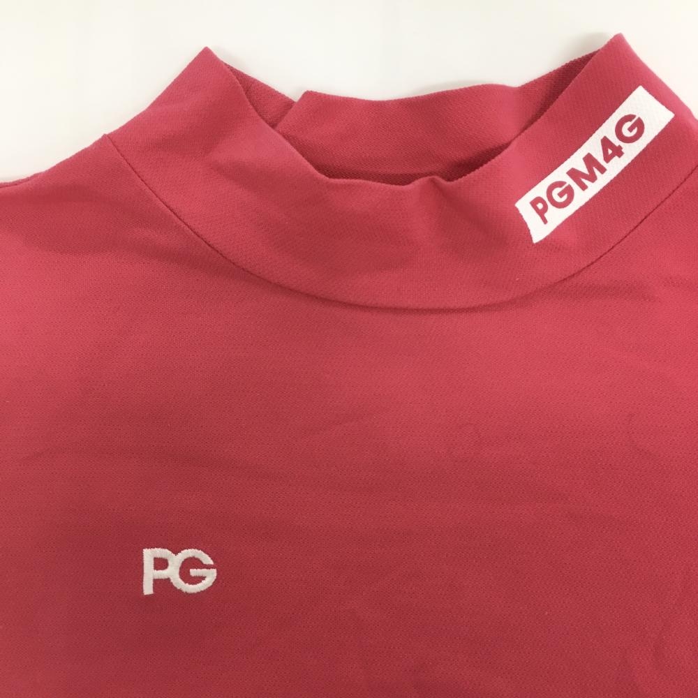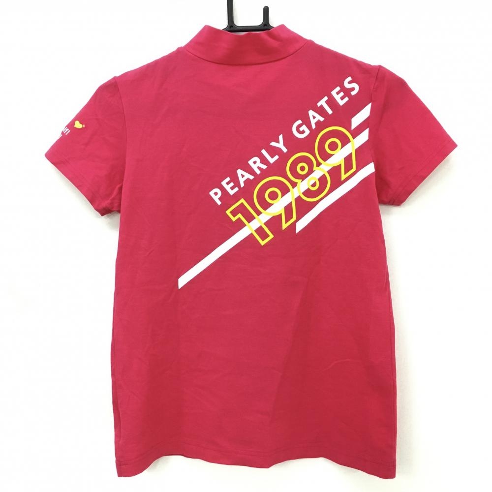 【美品】パーリーゲイツ 半袖ハイネックシャツ ピンク ロゴ白 背面ビッグロゴ レディース 0(S) ゴルフウェア PEARLY GATES