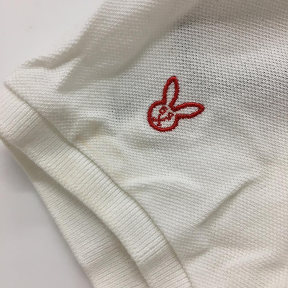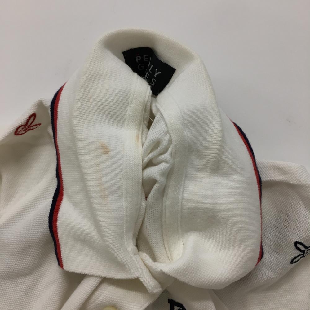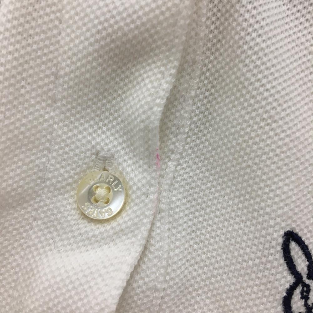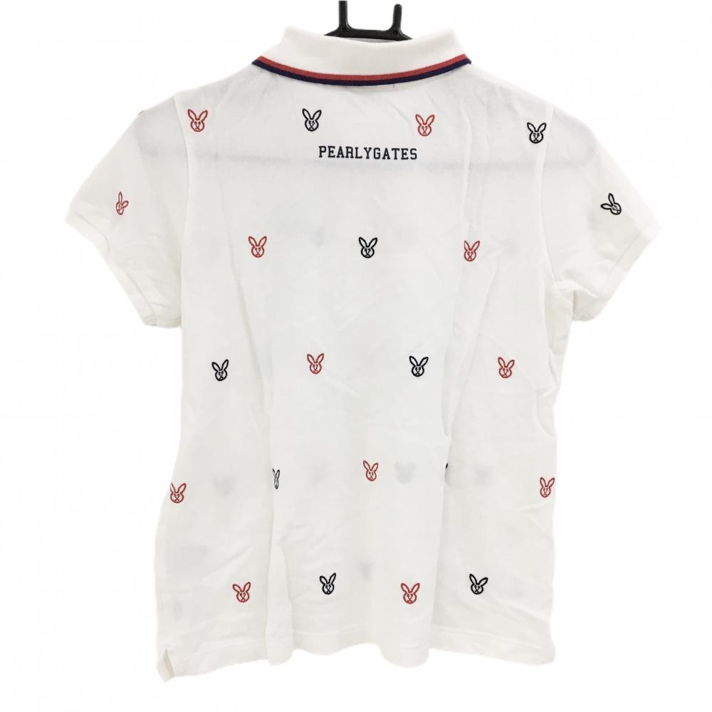 パーリーゲイツ 半袖ポロシャツ 白×ネイビー うさぎ刺しゅう総柄 レディース 0(S) ゴルフウェア PEARLY GATES