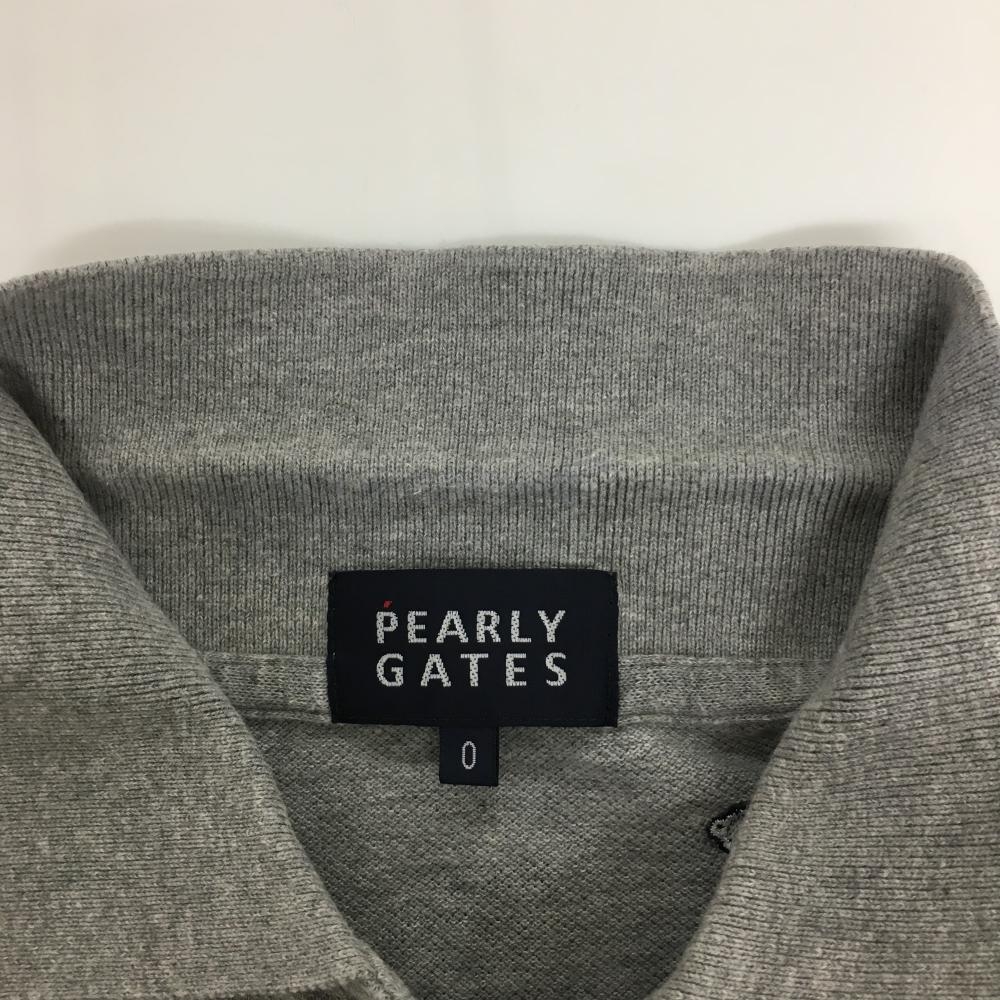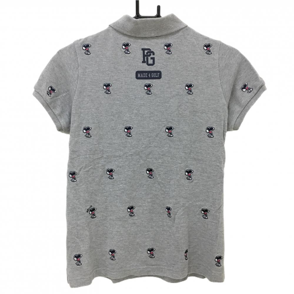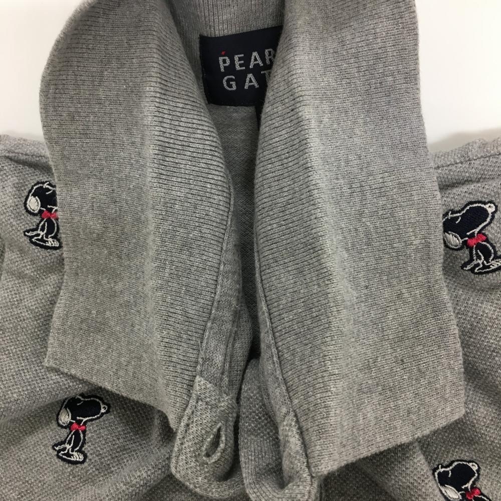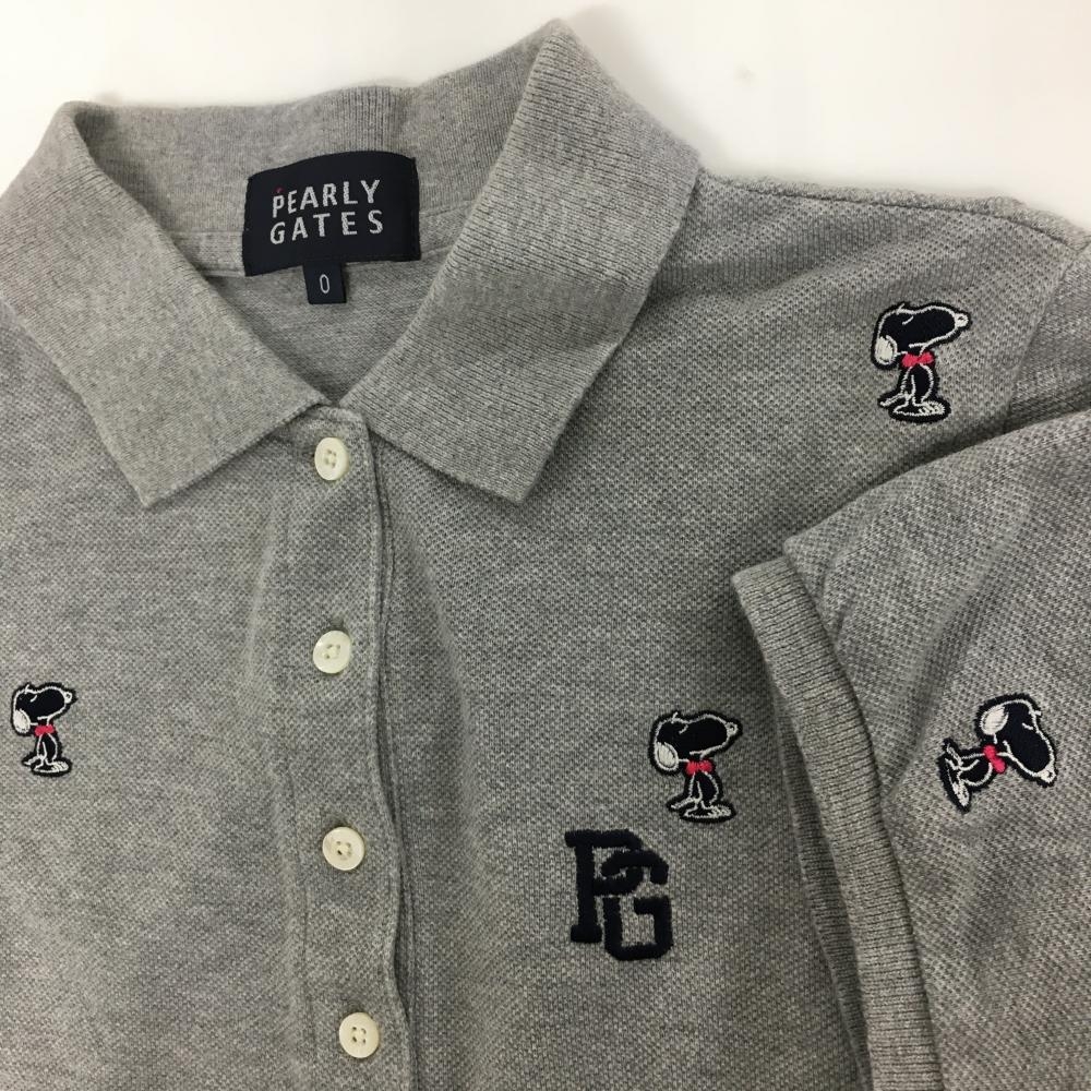 【美品】パーリーゲイツ×PEANUTS 半袖ポロシャツ グレー×ネイビー スヌーピー刺しゅう総柄 レディース 0(S) ゴルフウェア PEARLY GATES
