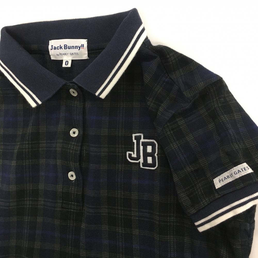 ジャックバニー 半袖ポロシャツ ネイビー×ベージュ チェック レディース 0(S) ゴルフウェア Jack Bunny