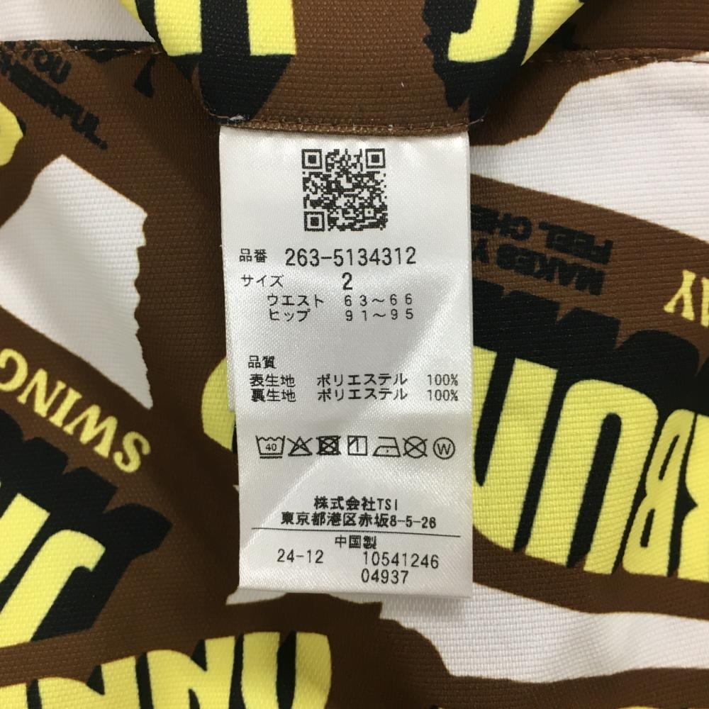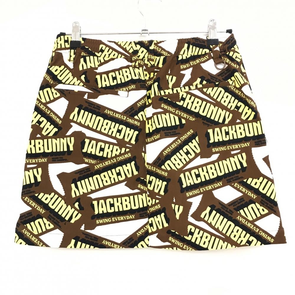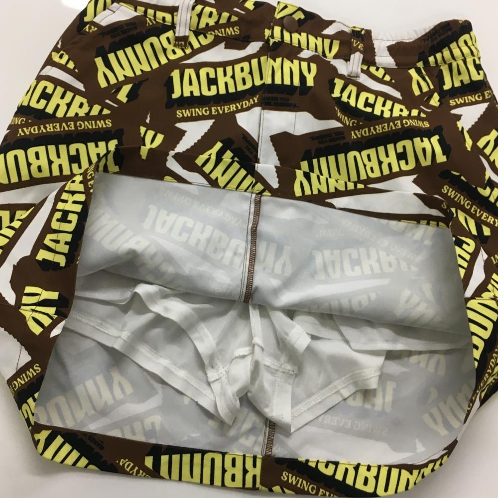 【超美品】ジャックバニー スカート ブラウン×イエロー ロゴ総柄 吸水速乾 レディース 2(L) ゴルフウェア 2025年モデル Jack Bunny