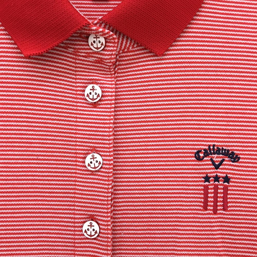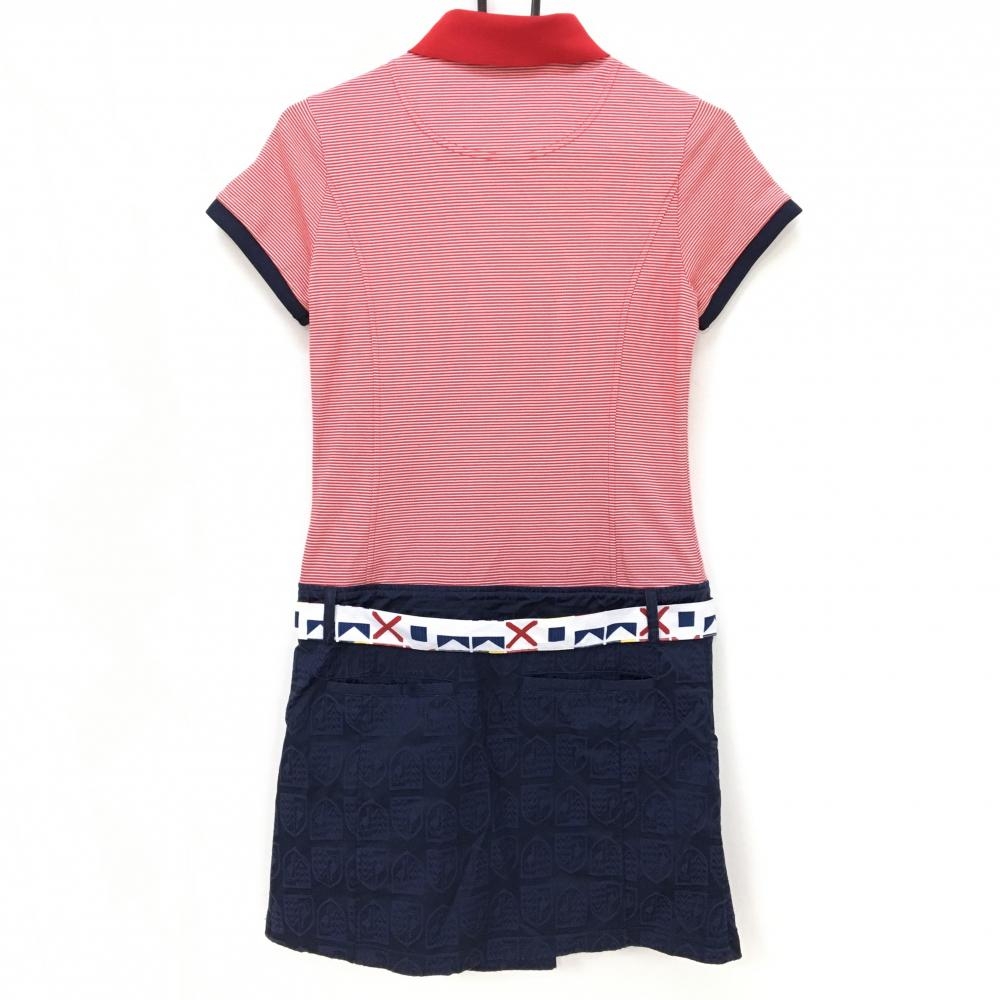キャロウェイ 半袖ポロワンピース レッド×ネイビー 上部ボーダー ベルト付 レディース M ゴルフウェア Callaway