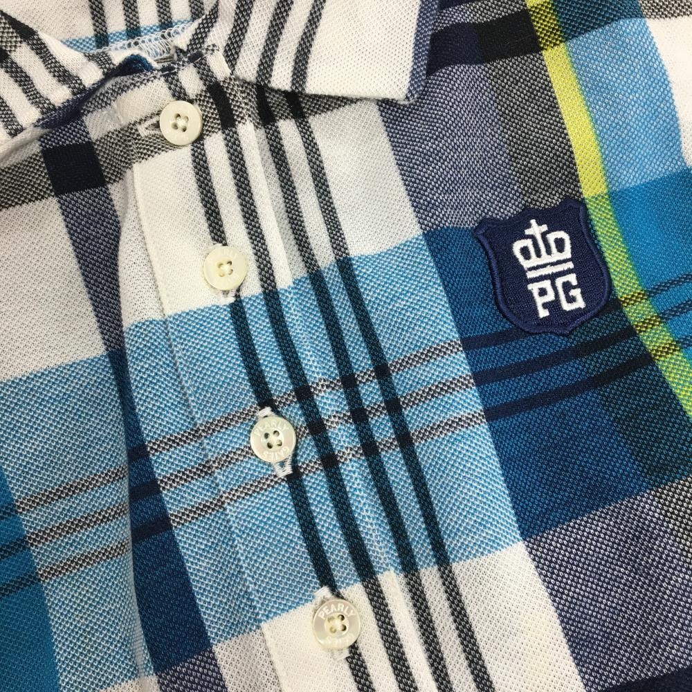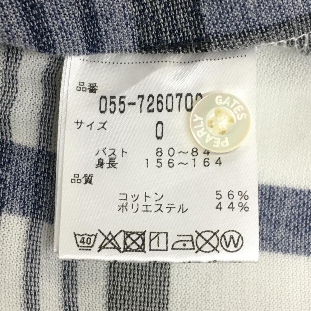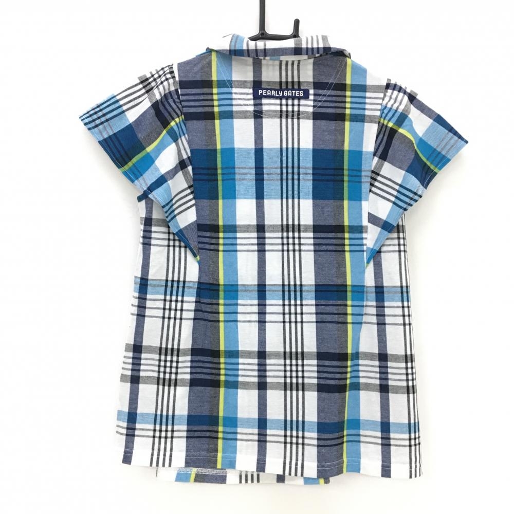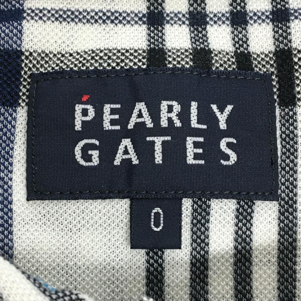 【超美品】パーリーゲイツ 半袖ポロシャツ 白×ネイビー チェック 袖フリル レディース 0(S) ゴルフウェア PEARLY GATES
