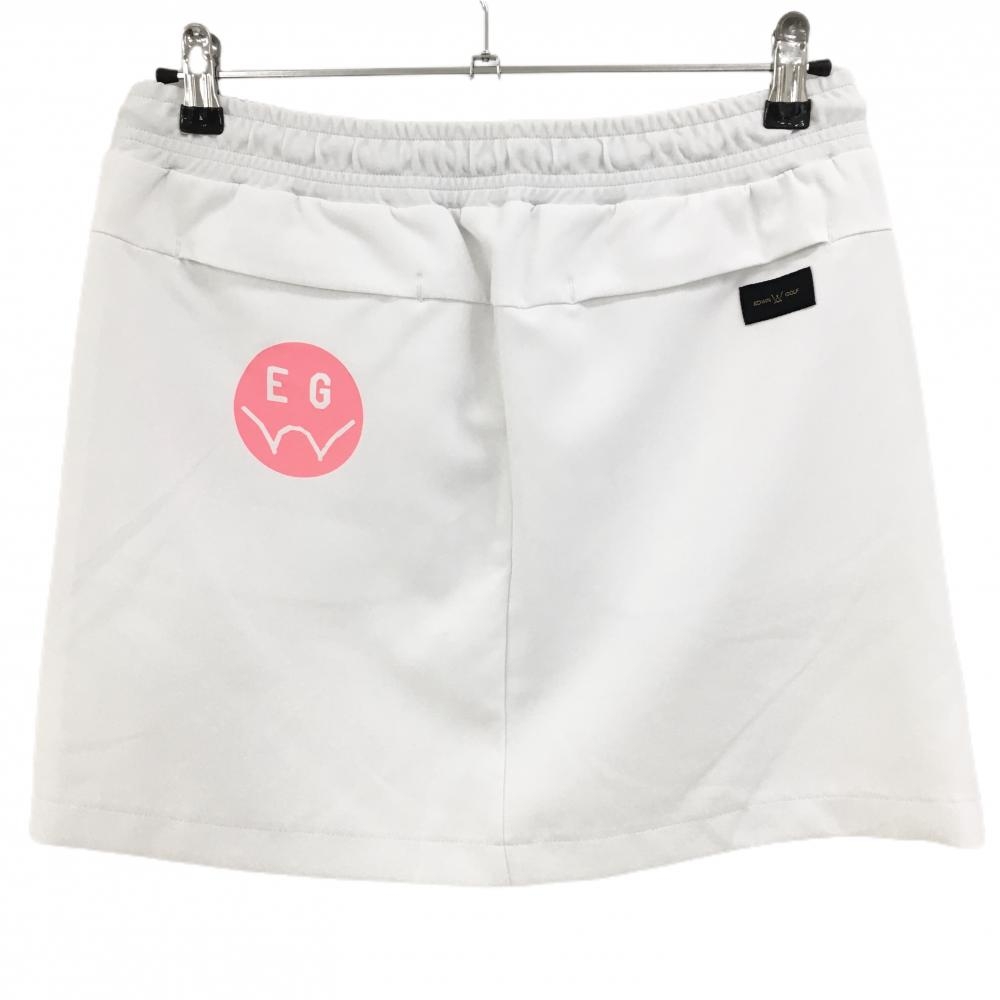 【超美品】エドウィンゴルフ スカート 白 ロゴピンク ウエストゴム 調節紐 レディース L ゴルフウェア EDWIN GOLF