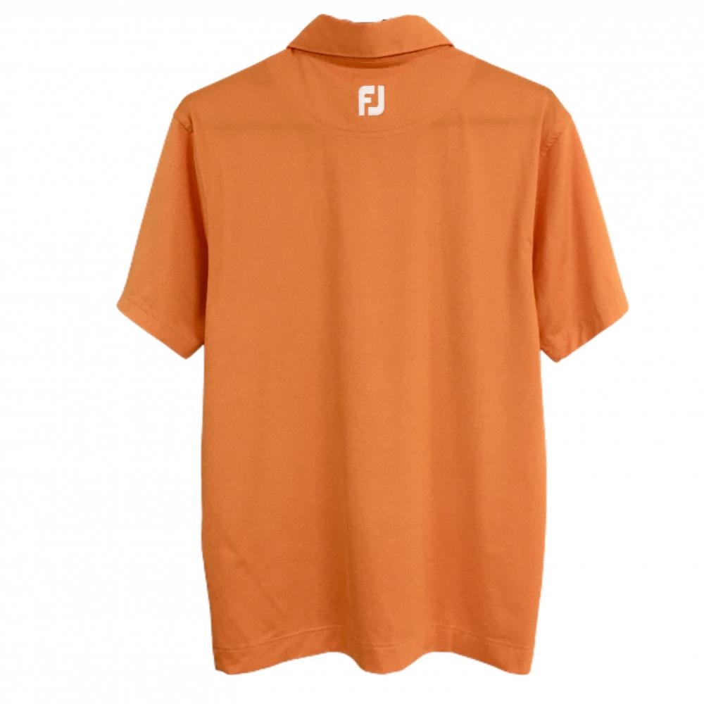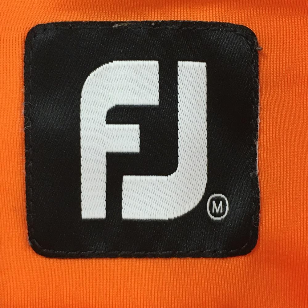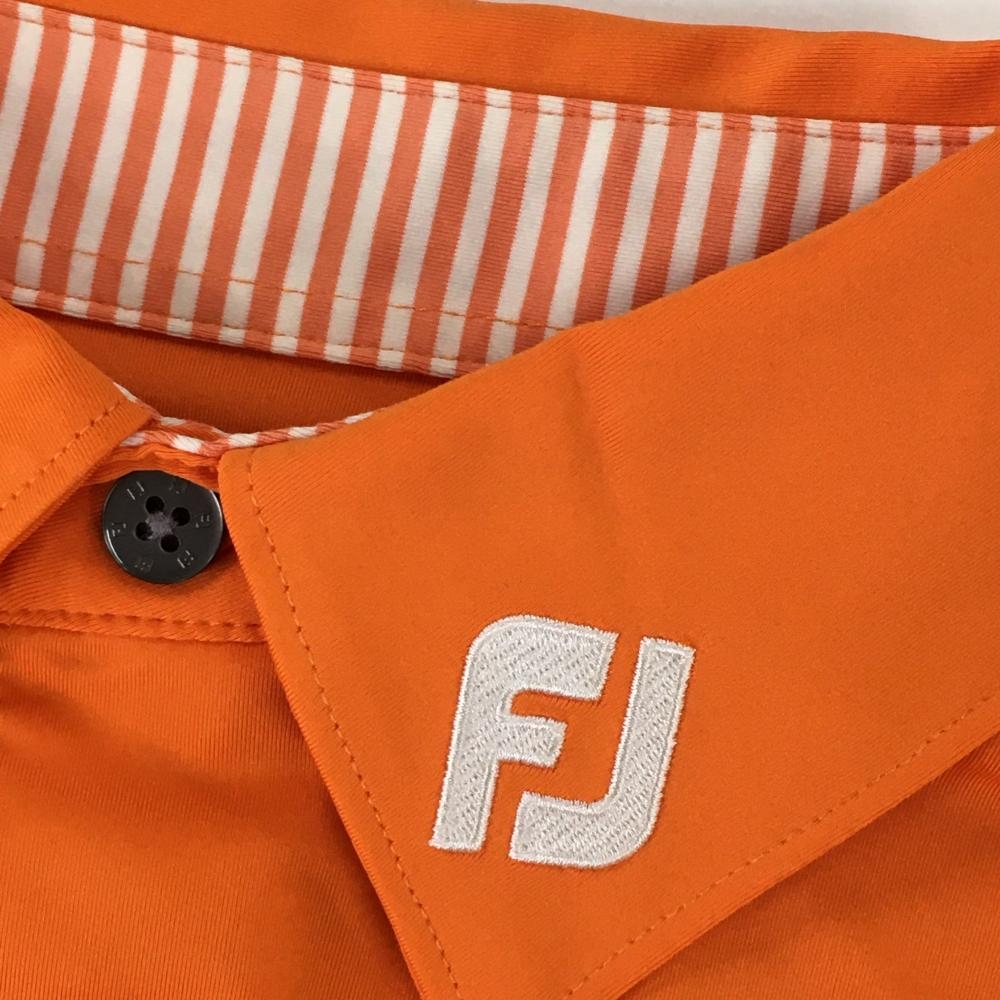 【美品】フットジョイ 半袖ポロシャツ オレンジ 襟内側ストライプ 襟ロゴ刺しゅう メンズ M ゴルフウェア FootJoy