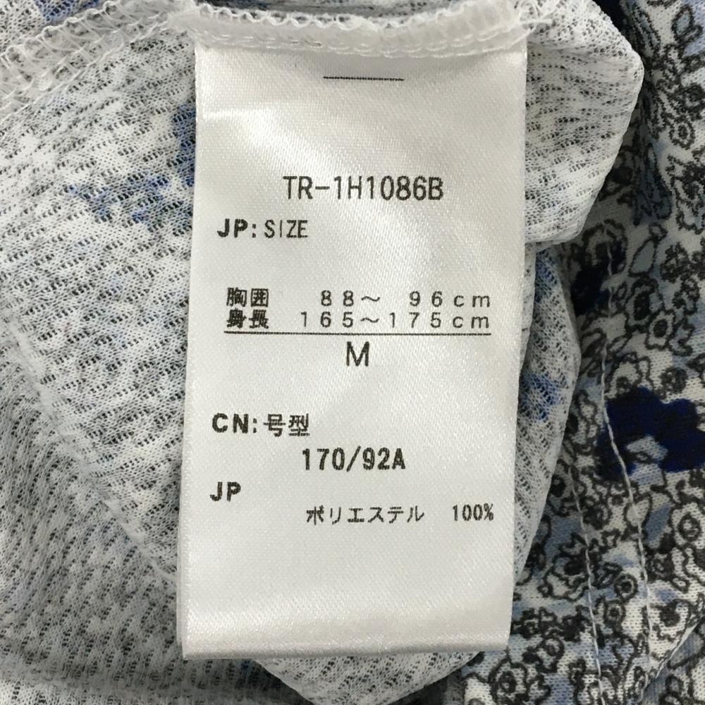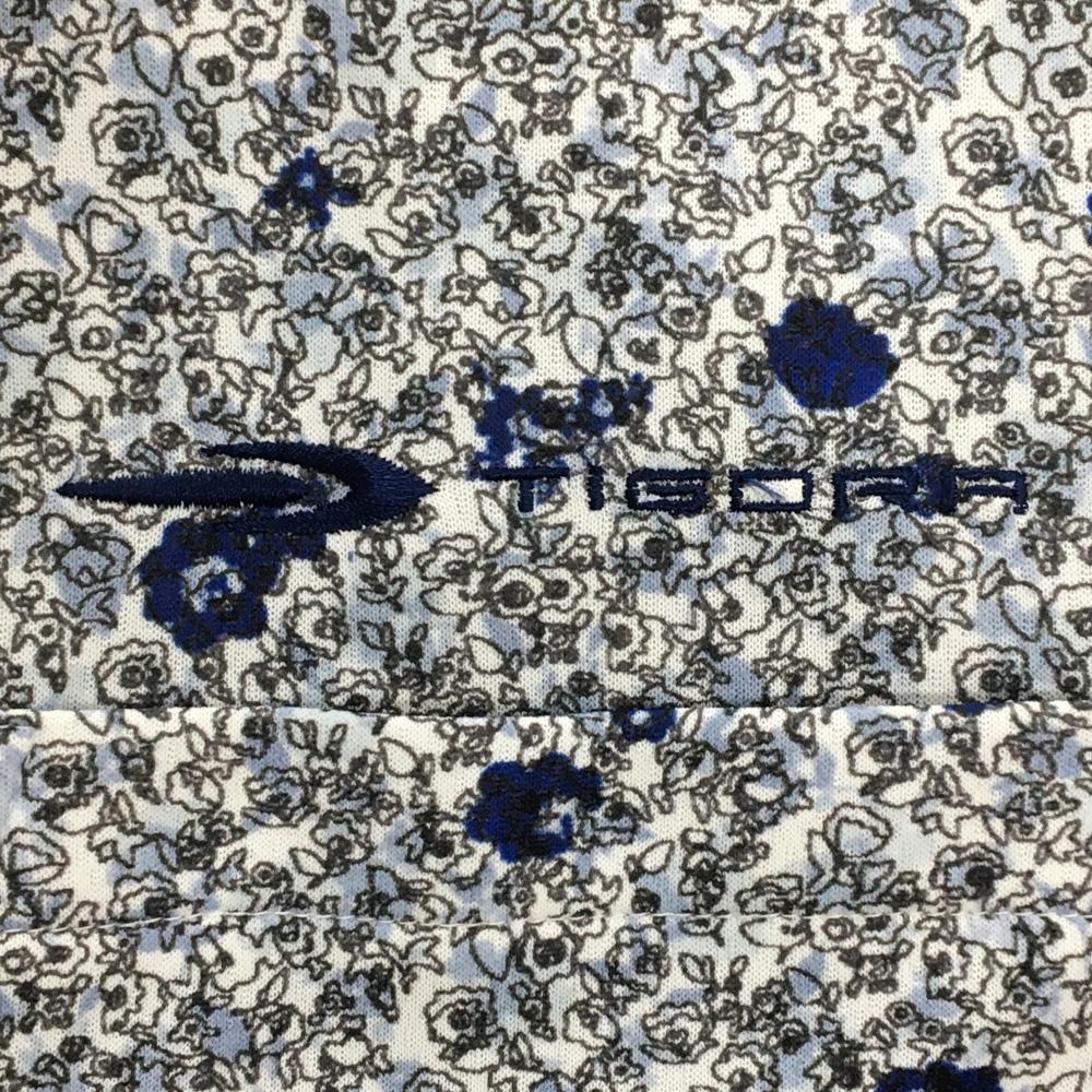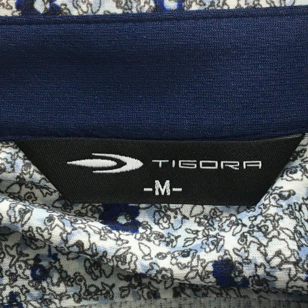 【超美品】ティゴラ 半袖ポロシャツ 白×黒×ネイビー 小花柄 ボタンダウン 胸ポケット付 メンズ M ゴルフウェア TIGORA